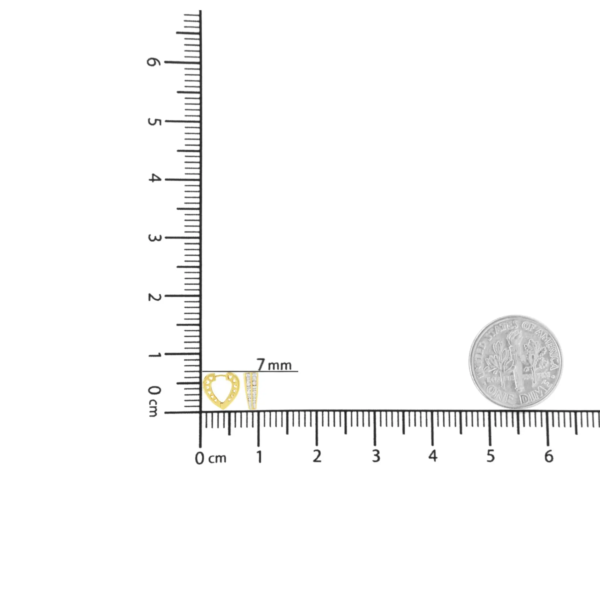 These petite and trendy diamond huggy earrings are the perfect gift for any loved one. Created in 14k yellow and white gold, this beautiful piece has heart-shaped designs etched into it’s base. With a total diamond weight of 1 ct., these hoops showcase stunning round and baguette-cut diamonds in a channel setting.