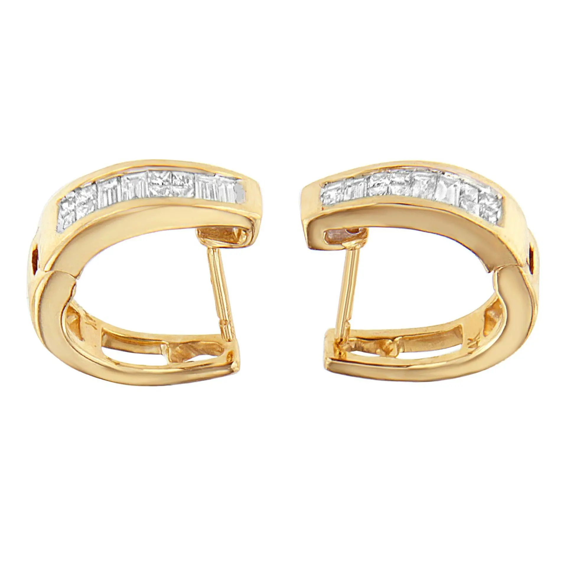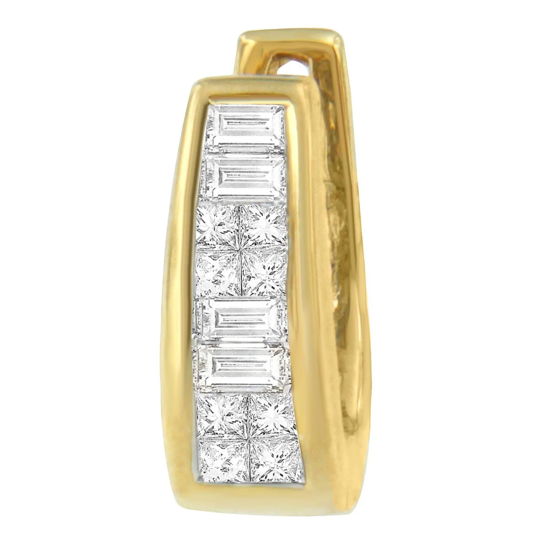 Make everyone take a second look by wearing these stunning diamond earrings. These 14k yellow gold diamond earrings features 1/2ct princess and baguette cut that lends it a unique look. When you will wear these earrings at your next party then it will surely fetch you a lot of compliments.