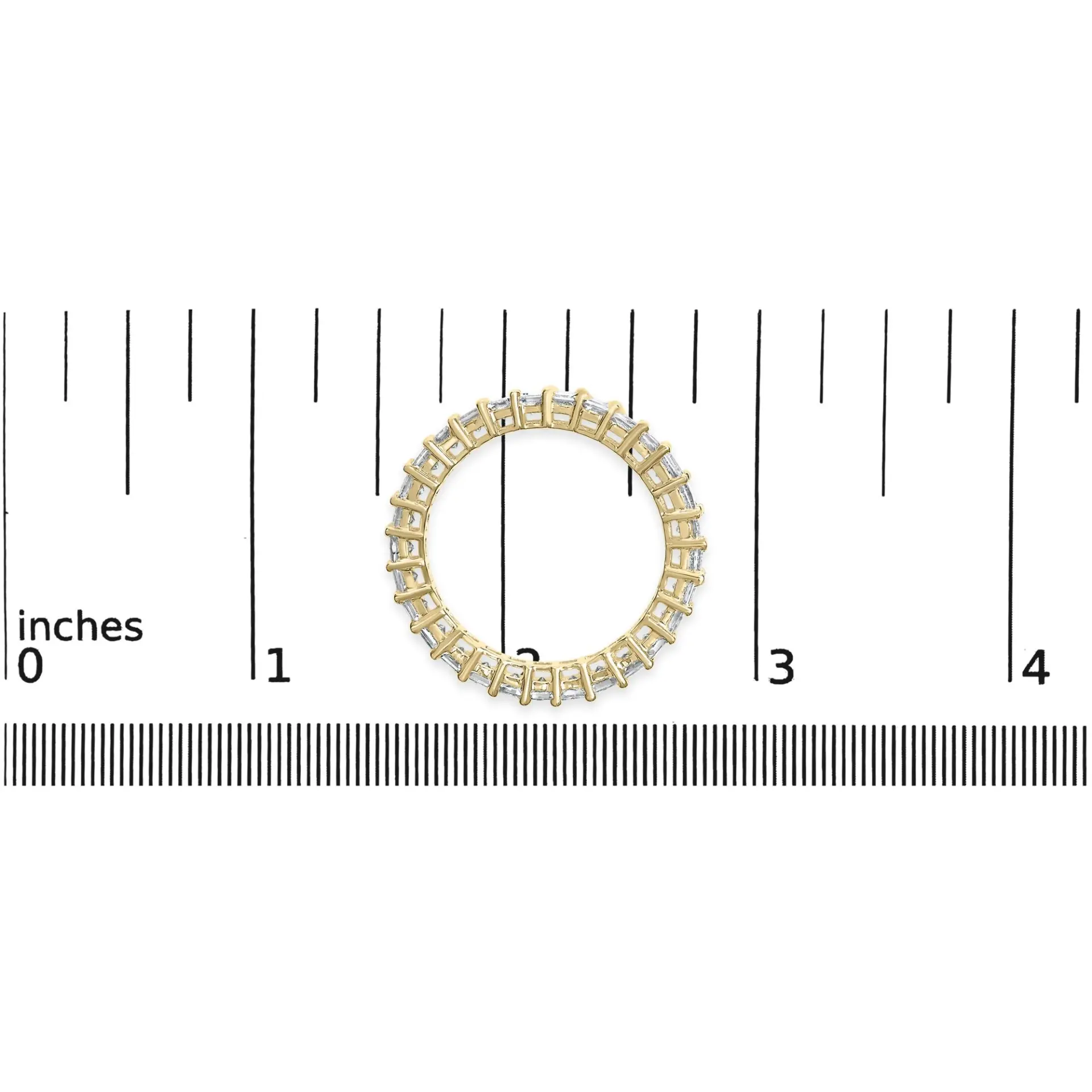 Captured in this exquisite creation is the essence of eternal elegance a 14K yellow gold eternity band that whispers tales of everlasting love and commitment. Each of the 29 natural, princess-cut diamonds, totaling a resplendent 2 carats, is meticulously set in a shared prong design, ensuring that every stone contributes to the band’s radiant halo. The diamonds, with their J-K color, are a perfect match for the warm hues of yellow gold, creating a harmonious blend that exudes a luxurious allure. The individual diamond weight of approximately 0.07 carats means that each stone is a testament to precision and artistry. This ring is not just a piece of jewelry; it is a continuous circle of light and brilliance, representing an unbreakable bond. Whether it’s to commemorate a significant milestone or to symbolize an unending love, this ring stands as an emblem of timeless sophistication and beauty.