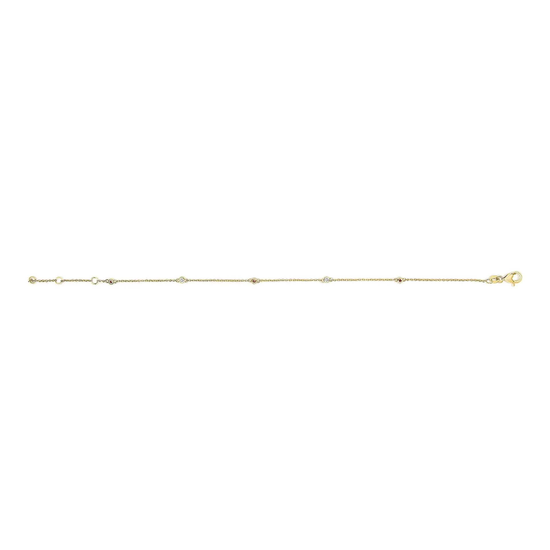 14K Yellow Gold Alternating Red Ruby and White Diamond Bezel Station Chain Bracelet (I-J Color, SI2-I1 Clarity) – 7.5″ Inches