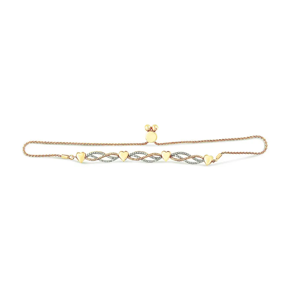 14K Yellow Gold Plated .925 Sterling Silver 1/10 Cttw Diamond Wave and Hearts Bolo Bracelet (I-J Color, I2-I3 Clarity) – 4″-10″ Adjustable