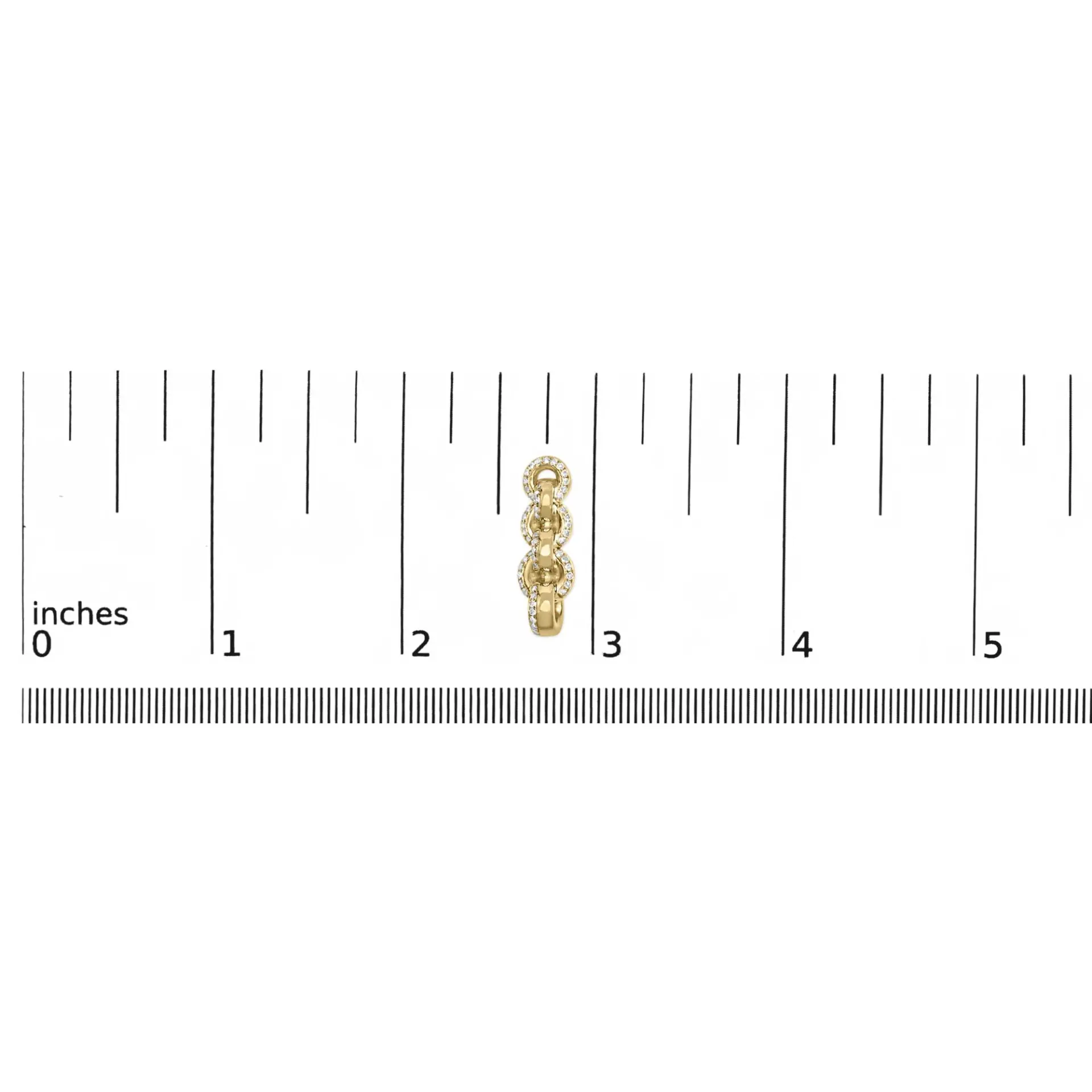 Elevate your jewelry collection with the exquisite beauty of these 14K yellow gold plated .925 sterling silver chain link drop earrings. Each earring showcases a trio of interlocked links, meticulously outlined with natural round-cut diamonds totaling 3/4 carat. The diamonds are thoughtfully selected for their H-I color and I1-I2 clarity, casting a radiant glow that captures the essence of sophistication. Crafted with precision, these pieces dangle gracefully at 3/4 inches from the earlobes, secured by a push-back mechanism designed for comfort and safety. Whether for a special occasion or everyday elegance, these luminous earrings promise to be a cherished addition to any ensemble, reflecting both opulence and intricate craftsmanship.