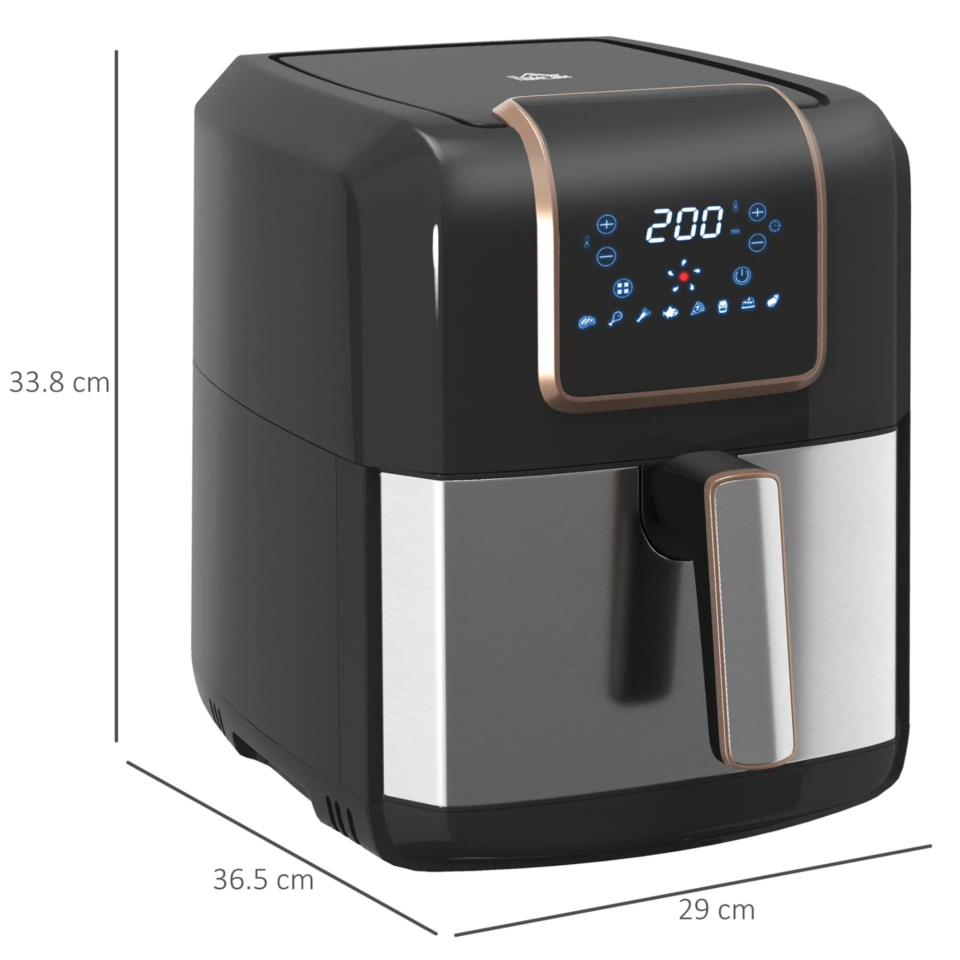 The healthier way to cook. Bring this HOMCOM large air fryer amongst your kitchen appliance set up, allowing you to cook pretty much anything you want in a variety of ways. LED screen for easy control, comes with 8 cooking programmes – temperature adjustable between 80-200C – you can cook a whole variety of food, from meats, to fish, vegetables and desserts. The 6.5L basket holds a lot, meaning you can use this air fryer oven for the whole family.