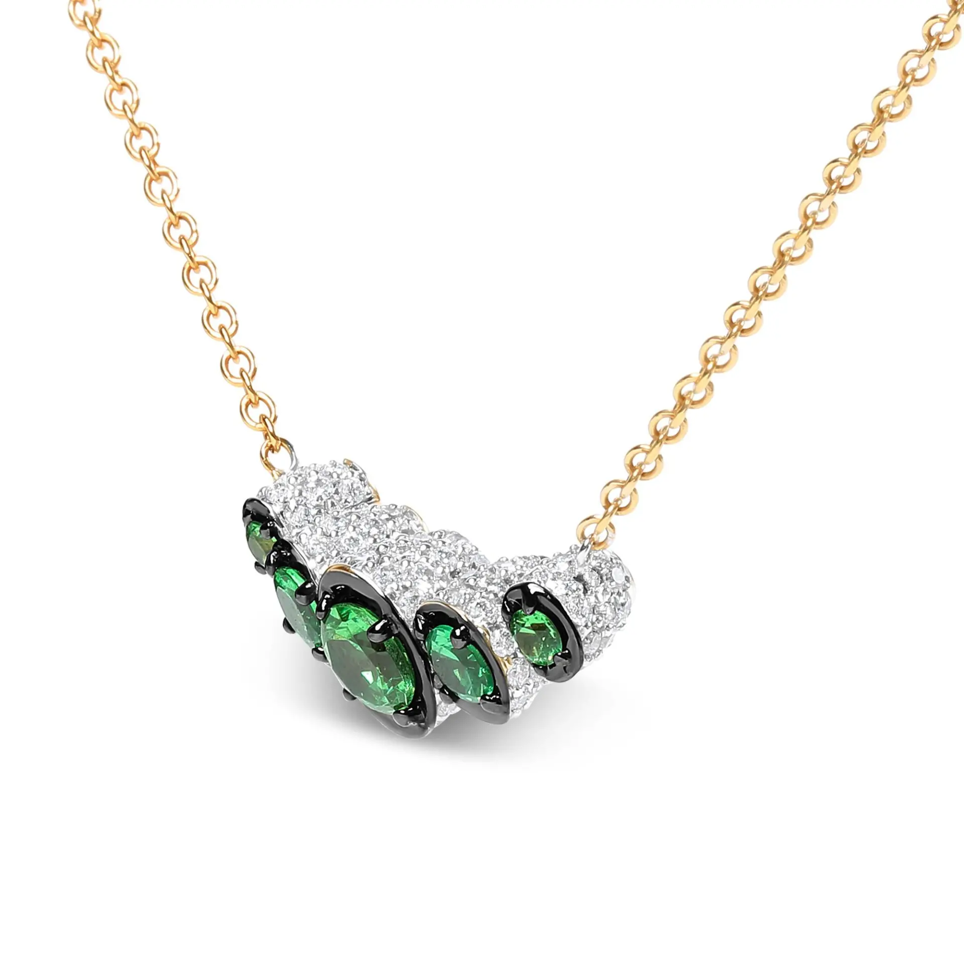 18K Rose Gold 3/4 Cttw Pave Diamonds and Graduated Green Tsavorite Gemstone Curved Bar Choker Necklace (G-H Color, SI1-SI2 Clarity) – Adjustable up to 14″ – 16.5″