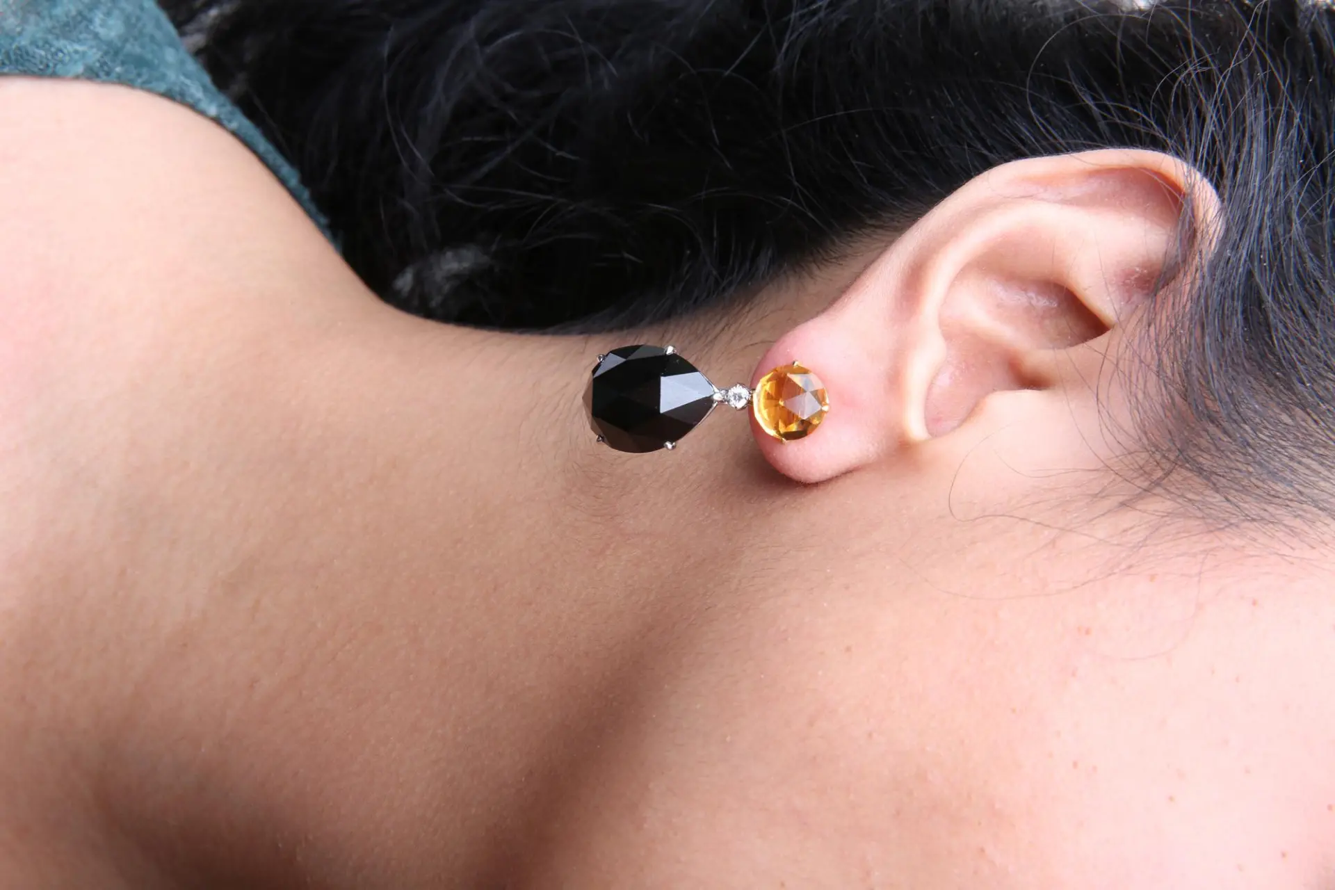 18K White and Yellow Gold 1/5 Cttw Diamond with Round Yellow Citrine and 20x15mm Pear Cut Black Onyx Gemstone Dangle Earring (G-H Color, SI1-SI2 Clarity)