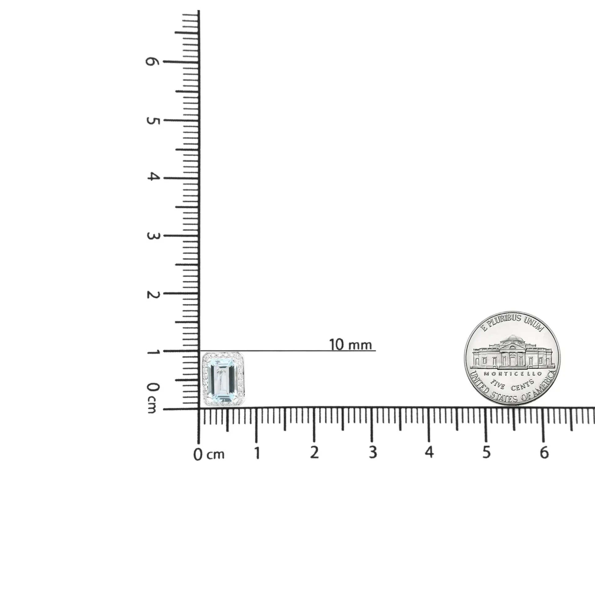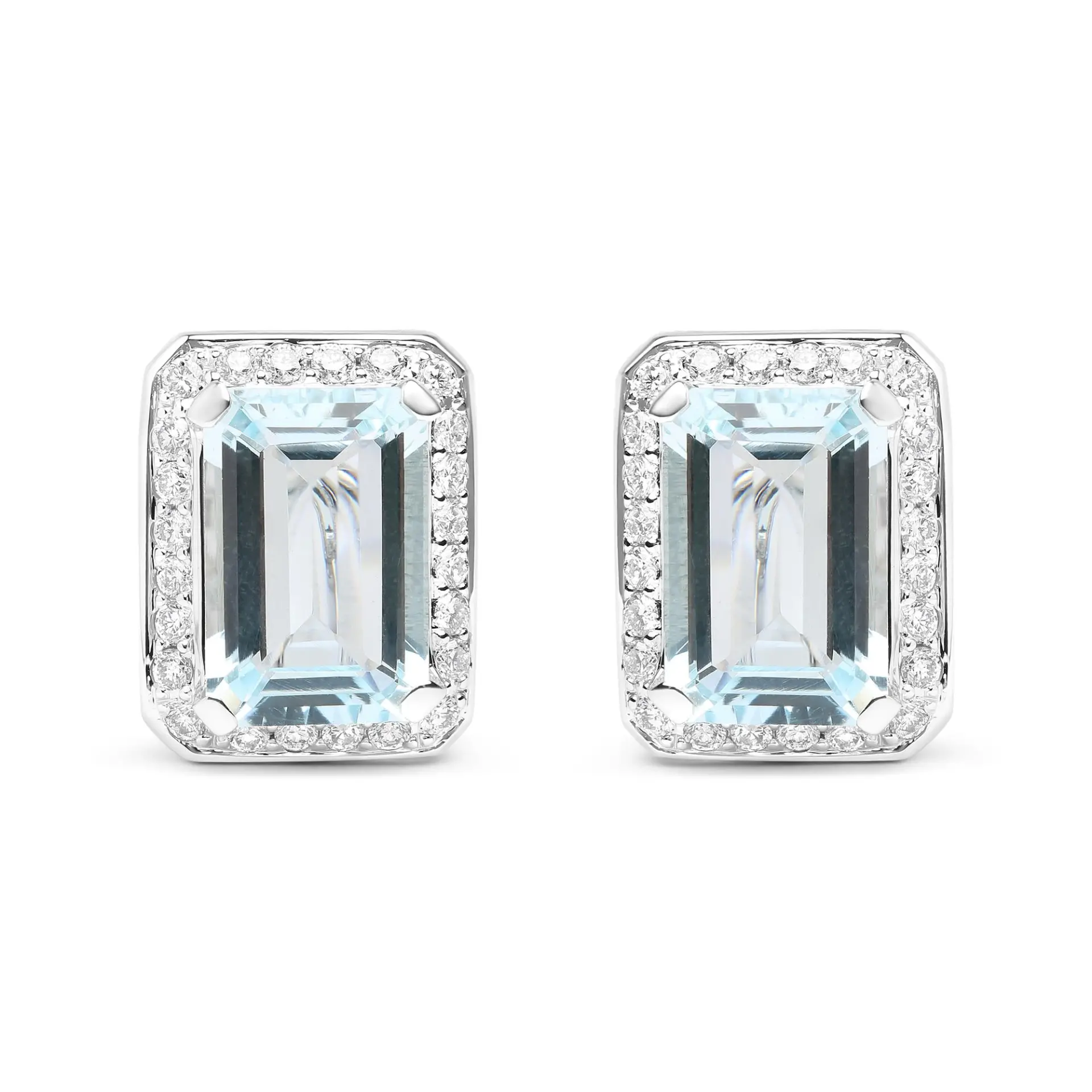 Budding with grace and elegance, these stud earrings bring a feminine energy crafted from genuine 18k white gold with natural gemstones and diamonds in a regal motif. At the center of each earring is a stately 13x9mm emerald-cut, heat-treated blue aquamarine gemstone in a 4-prong setting. A sparkling halo of round, prong-set diamonds frames this centerpiece with a total 3/4 cttw and an approximate G-H Color and SI1-SI2 Clarity. Omega findings keep these pierced earrings safe and secure on your ears for comfortable, worry-free wear all day long.