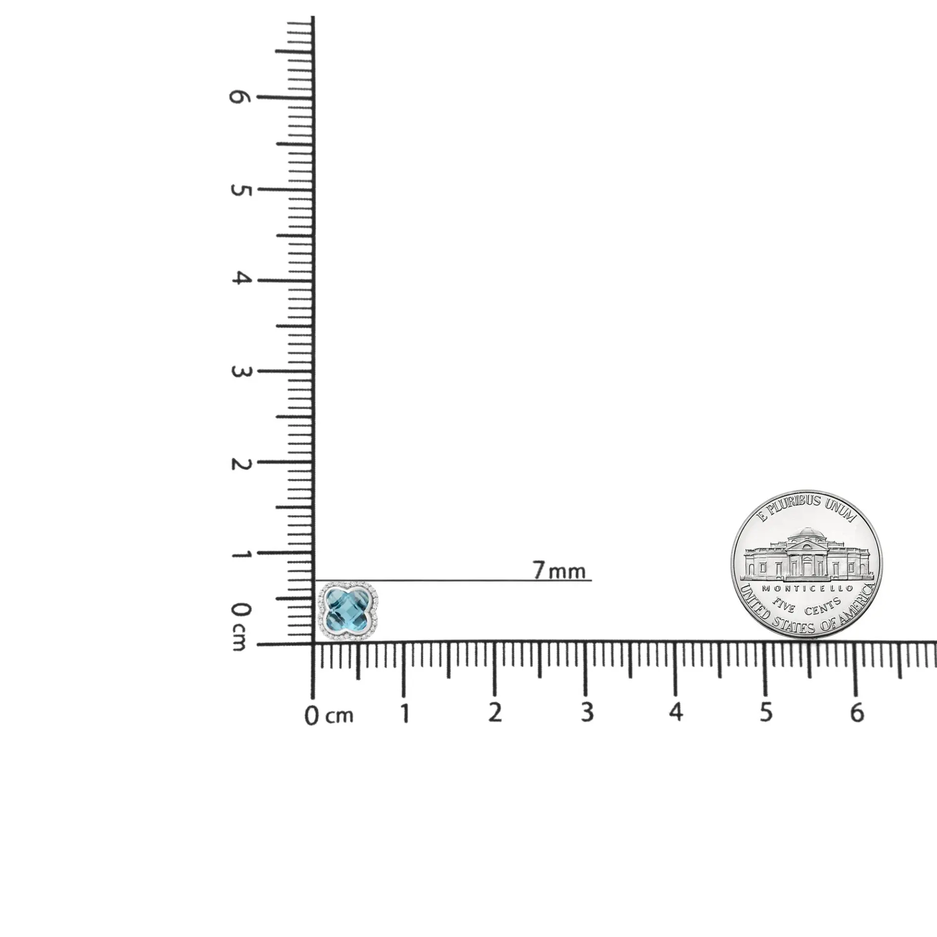 You will flip for these studs cast in genuine 18k white gold in a luck-bringing clover motif. The 11x11mm clover-cut London blue topaz gemstones in a stone-enhancing invisible setting. This natural gemstone is electrifying in a checkerboard cut that beautifully reflects the light, while a halo of round, prong-set diamonds adds to this rich sparkle with a total 3/8 cttw and an approximate G-H Color and SI1-SI2 Clarity. These December birthstone earrings are a stunner and secure in the ear via push back findings.