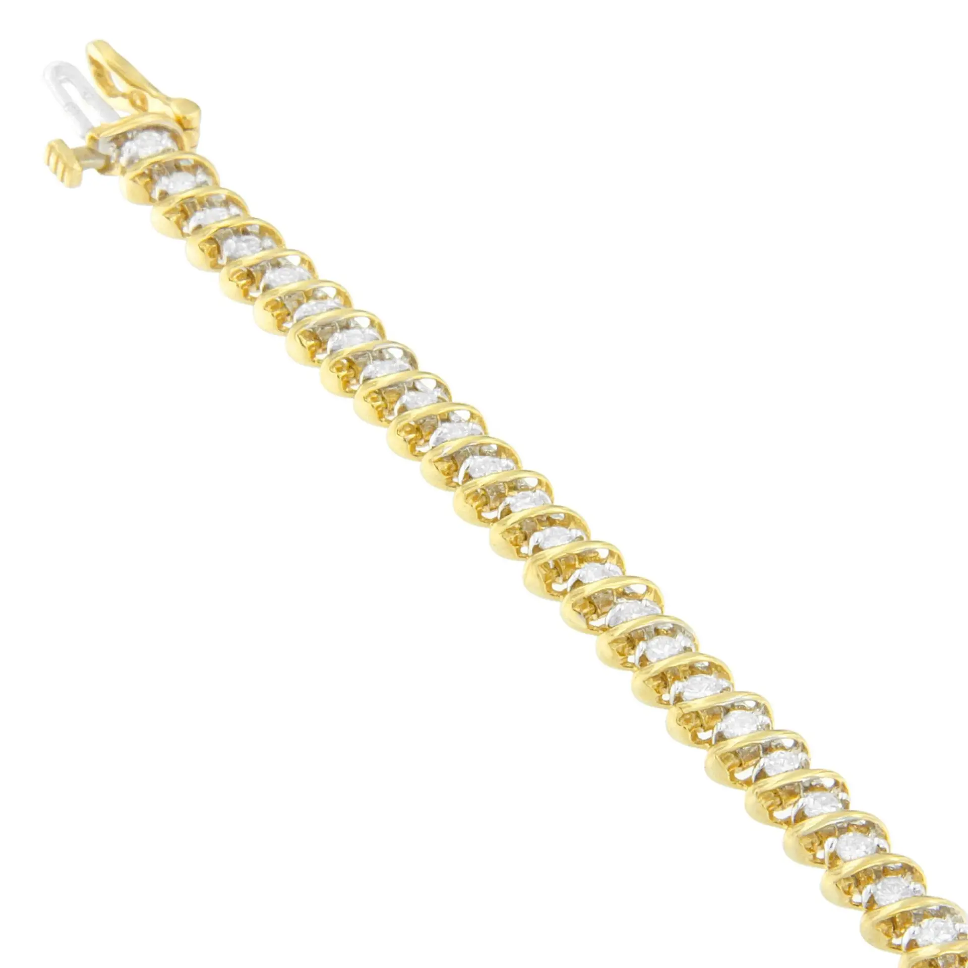 Bold meets brilliant! This unique bracelet is crafted with classic round cut diamonds nestled between raised bands of high shine 18 karat yellow gold to form a dazzling spiral effect for the woman who loves to stand out from the crowd.