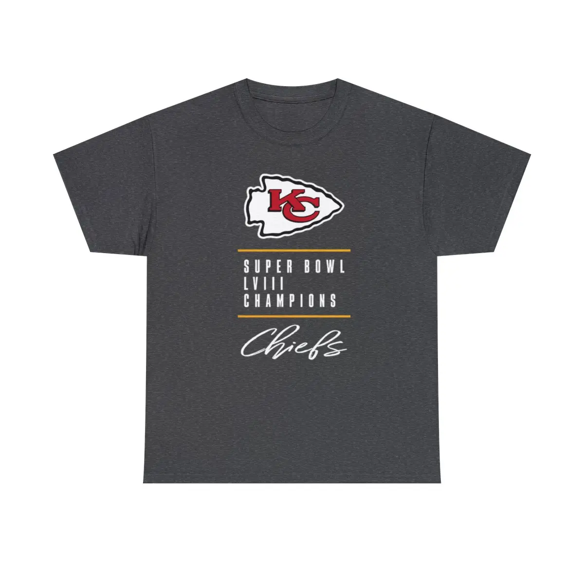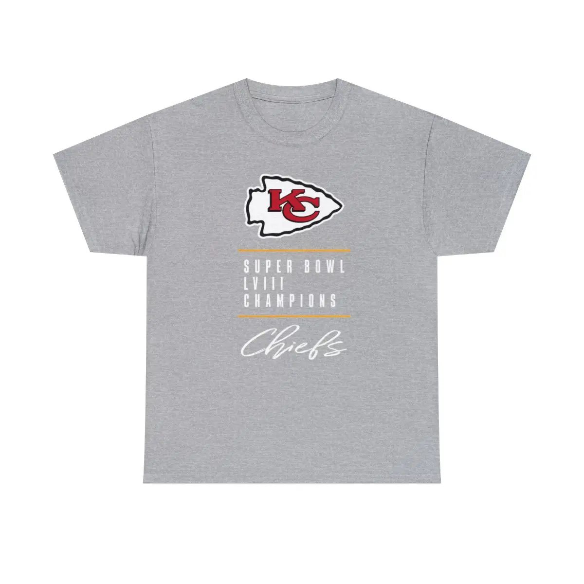Embrace the glory of the 2024 NFL Super Bowl LVIII Champions with this exclusive unisex heavy cotton tee. A staple for every football lover’s wardrobe, this tee celebrates the pinnacle of American football achievement with style and comfort.