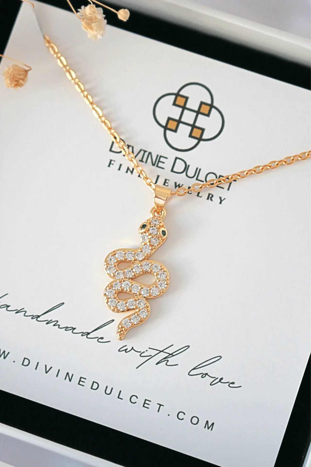 Slytherin necklace with clear cubic zirconia in diamond cut inlay, perfect to pair with more necklaces and beautifully layered shapes.