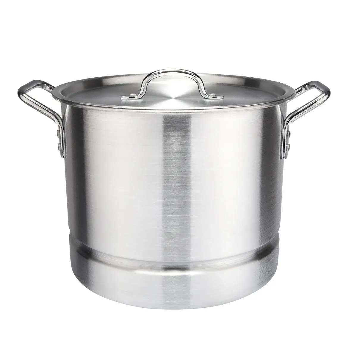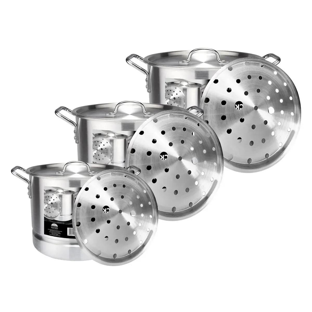 - COMPLETE SET: Includes three commercial-grade aluminum stockpots (24, 32, and 40 quart) with matching lids and steamer inserts for versatile cooking options