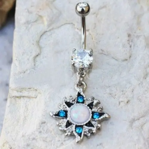 316L Stainless Steel White Opal Sunburst Navel Ring