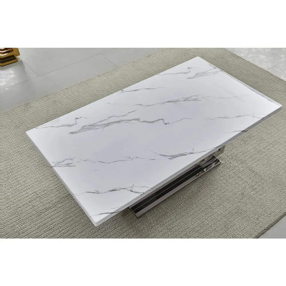 Glam style three piece set in white and gold. This set comes with one coffee table and two end tables. All the pieces of this set feature a real white marble top and gold color stainless steel base with a polished finish. Do note the marble top may not all be of the same pattern due natrual circumstances. Assembly is required.