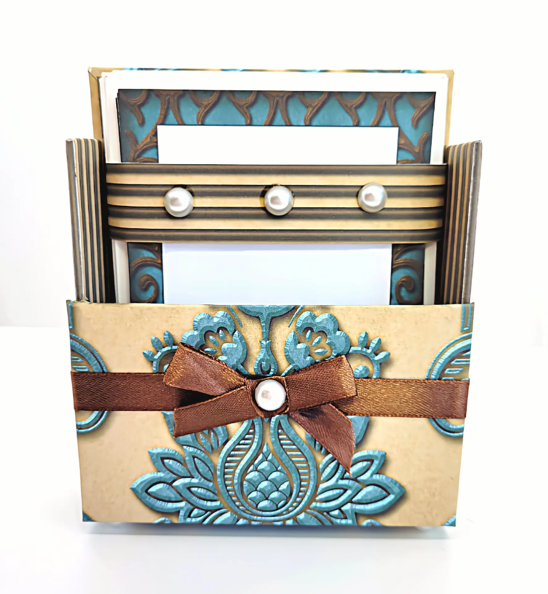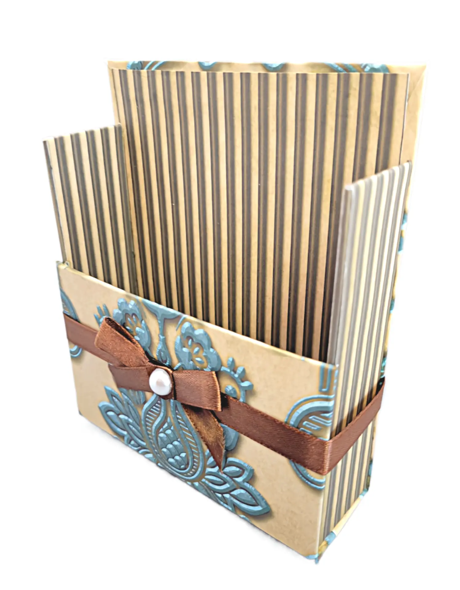 This masculine print stationery set has perfectly sized note cards for a quick “keep in touch” sentiment. A short note that gets the job done without having to fill a whole sheet of paper! It includes a bonus keep-forever reusable desktop organizer box for miscellaneous things you want to grab quickly on your desk, nightstand or end table. Whether you’re looking for a thoughtful gift for a loved one, or simply want to treat yourself to some new stationery, this set is sure to impress. With an eye-catching embossed look design, it’s both a practical organizational tool and the perfect way to elevate your work or study space.