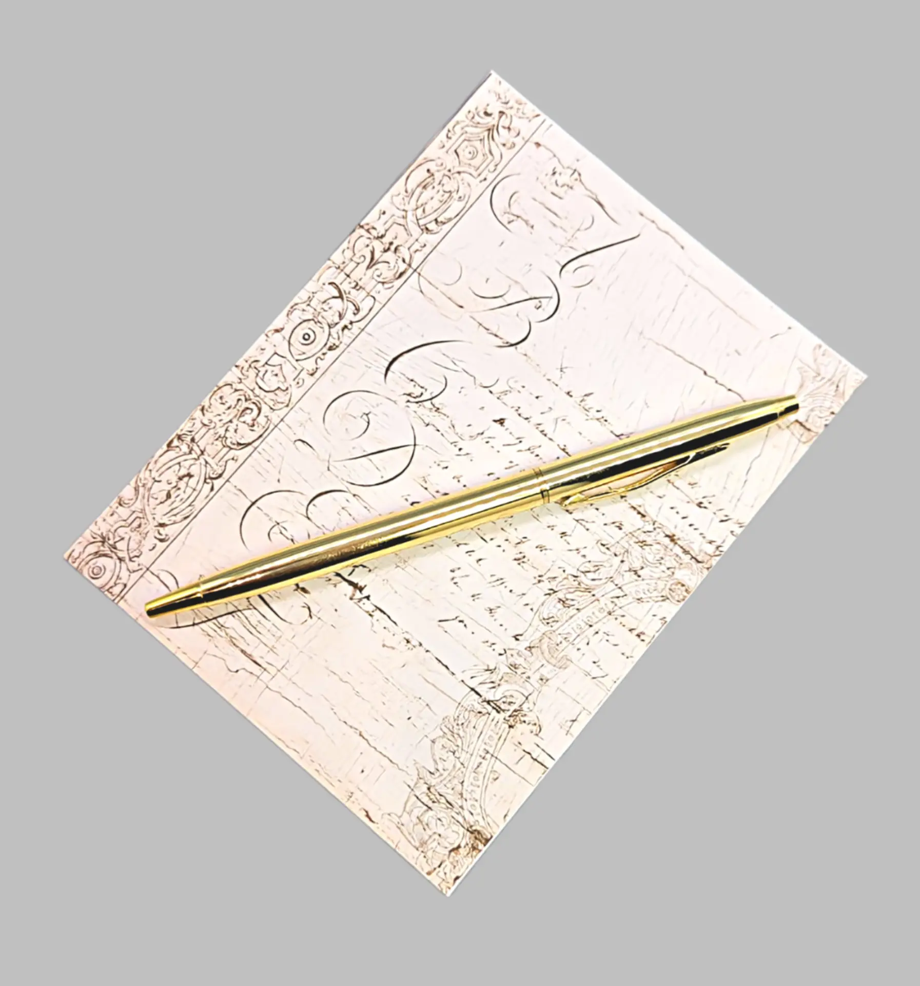 Be the first to review “42-Pc Stationery Gift Box Set w/Reusable Desktop Organizer Box and Gold Pen – Vintage Letters & Ivory Lace”