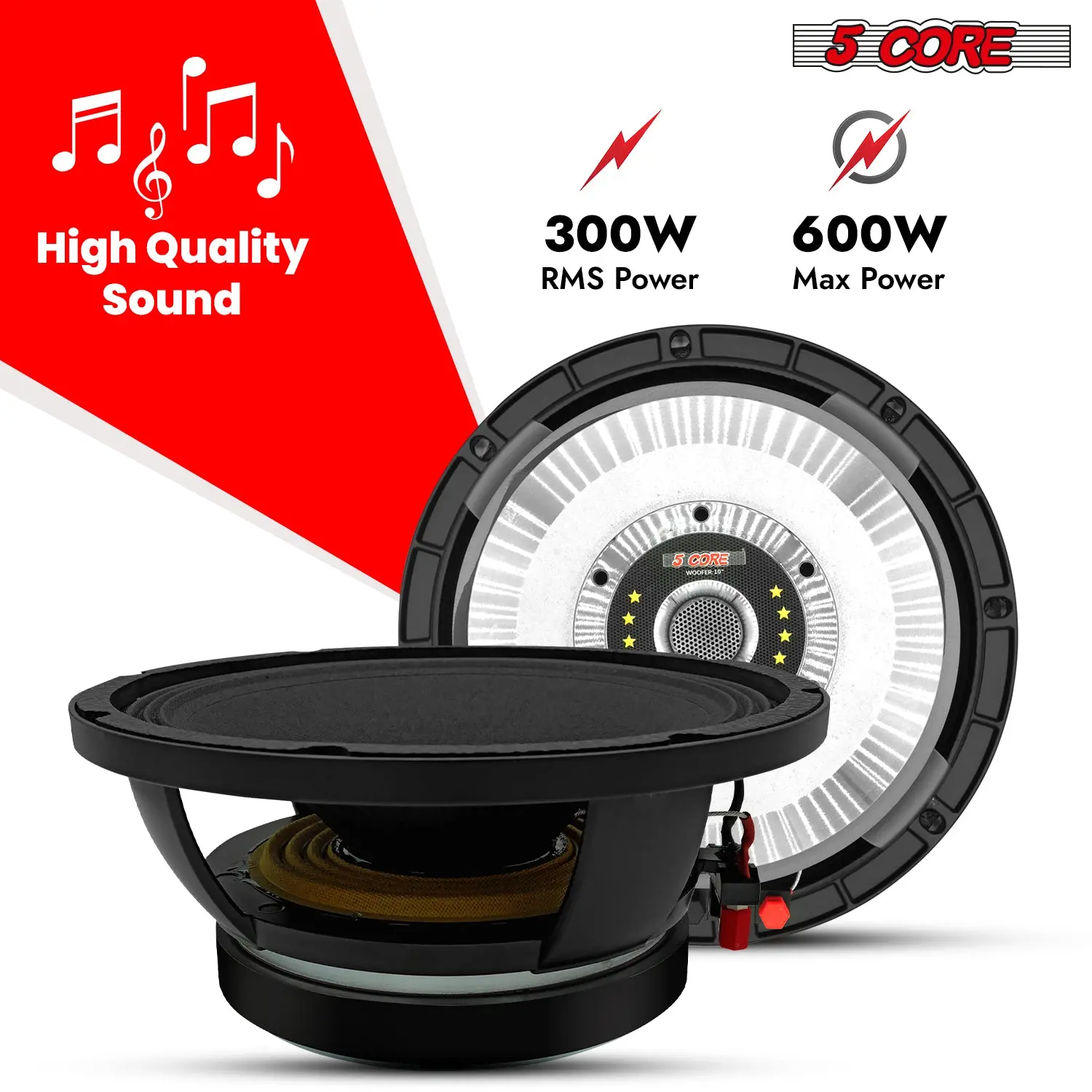 Powerful 10-Inch Subwoofer600W max, 300W RMS power delivers deep, distortion-free bass for an immersive audio experience.