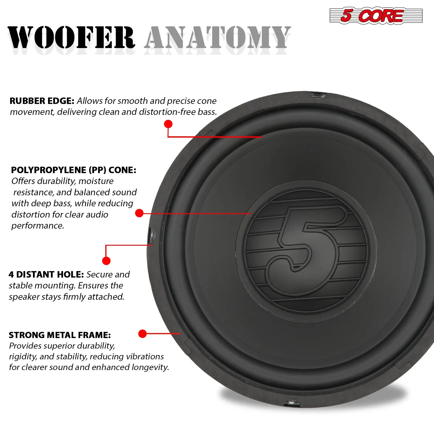 Durable Polypropylene ConeLightweight and moisture-resistant for long-lasting performance in any subwoofer car setup.