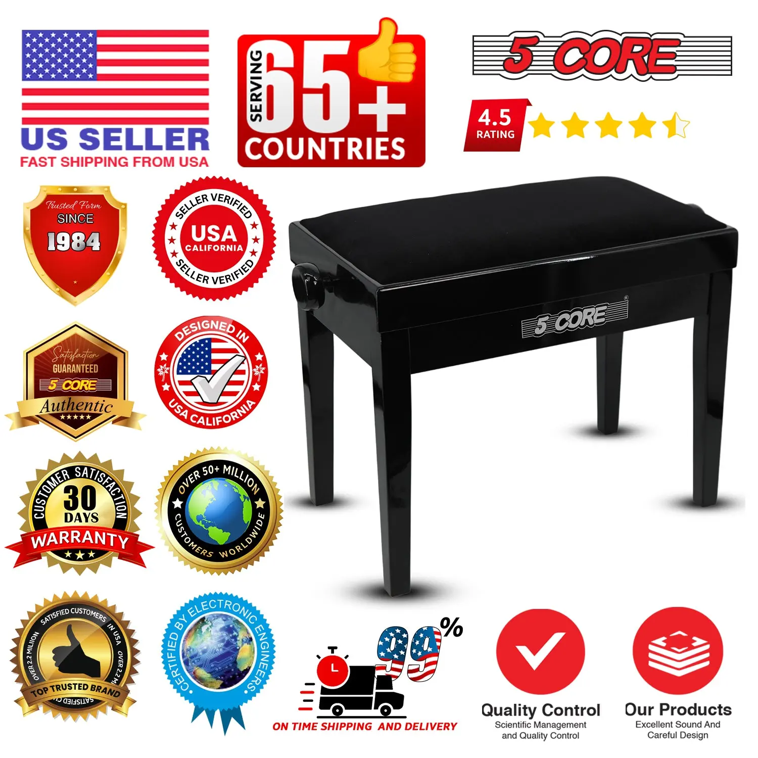 Be the first to review “5 Core Adjustable Piano Bench Thick 3.25″ Solid Wood Keyboard Stool Heavy Duty Musician Chair”