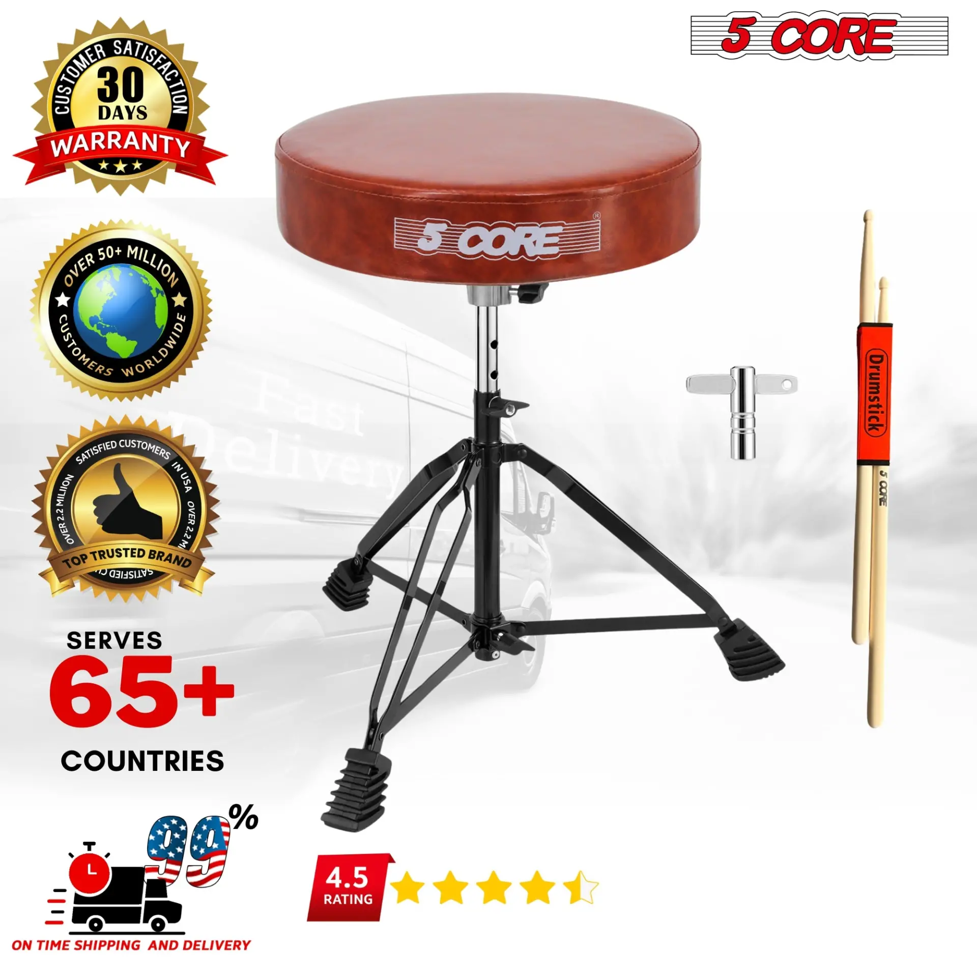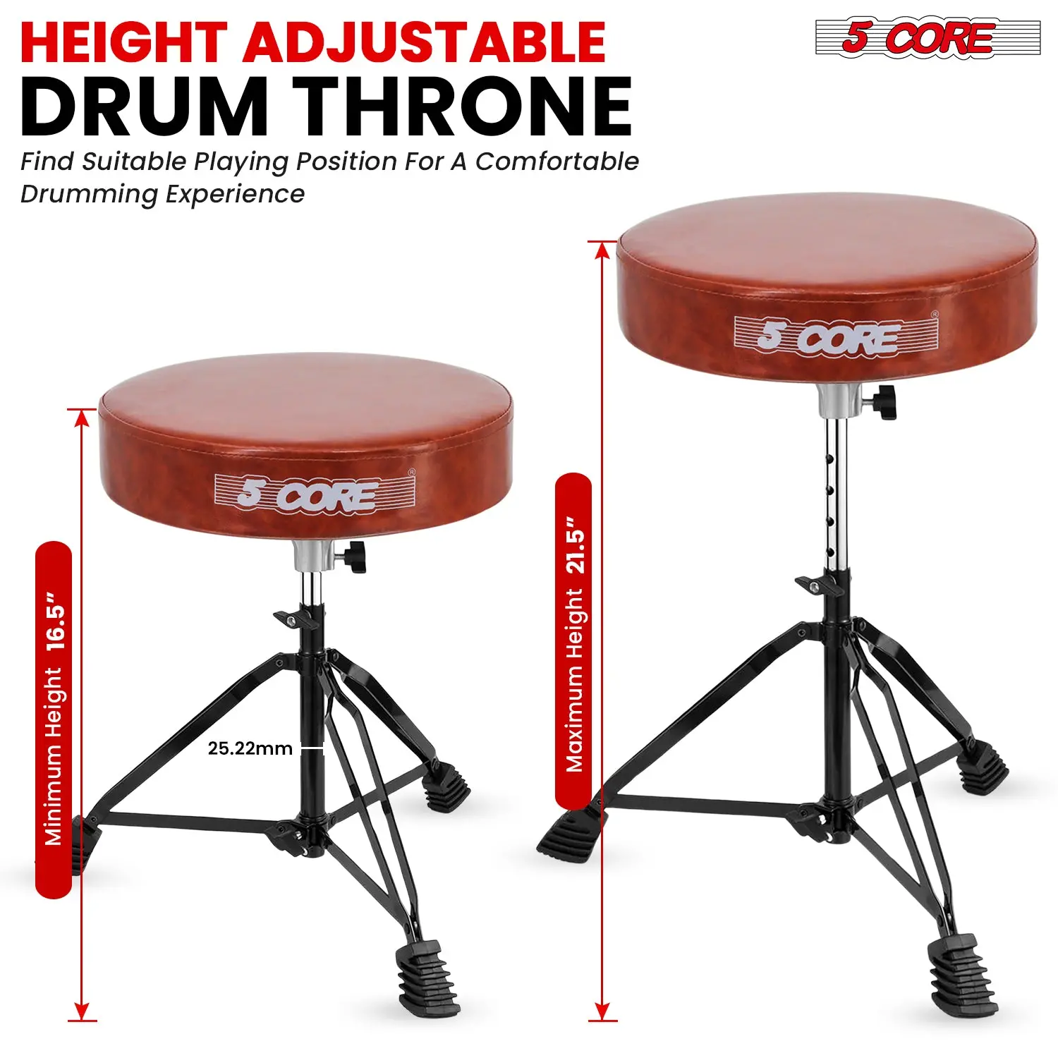 5 Core Drum Throne 3″ Thick Padded Comfortable Guitar Stool Drummer Chair Adjustable Musician Seat