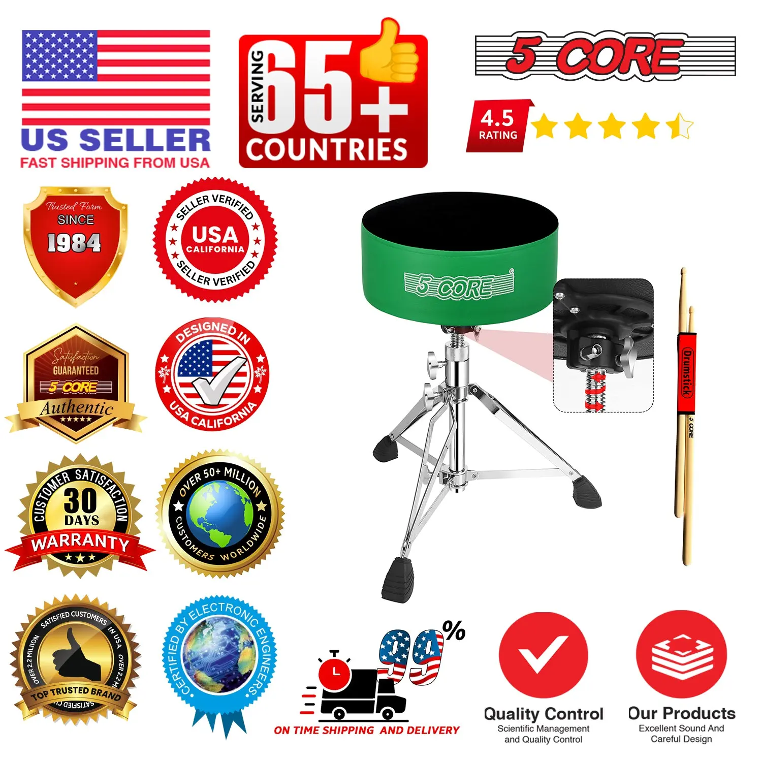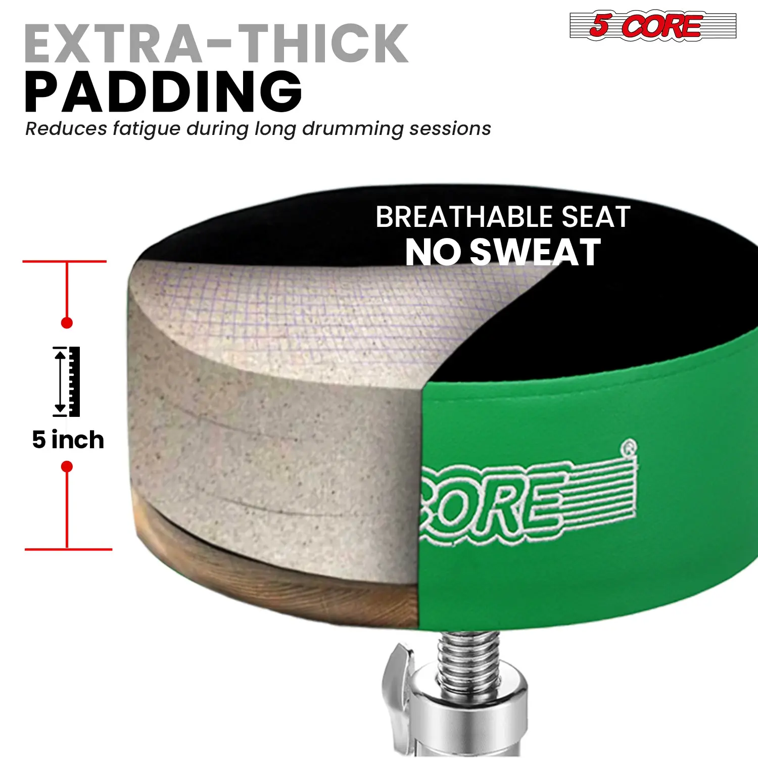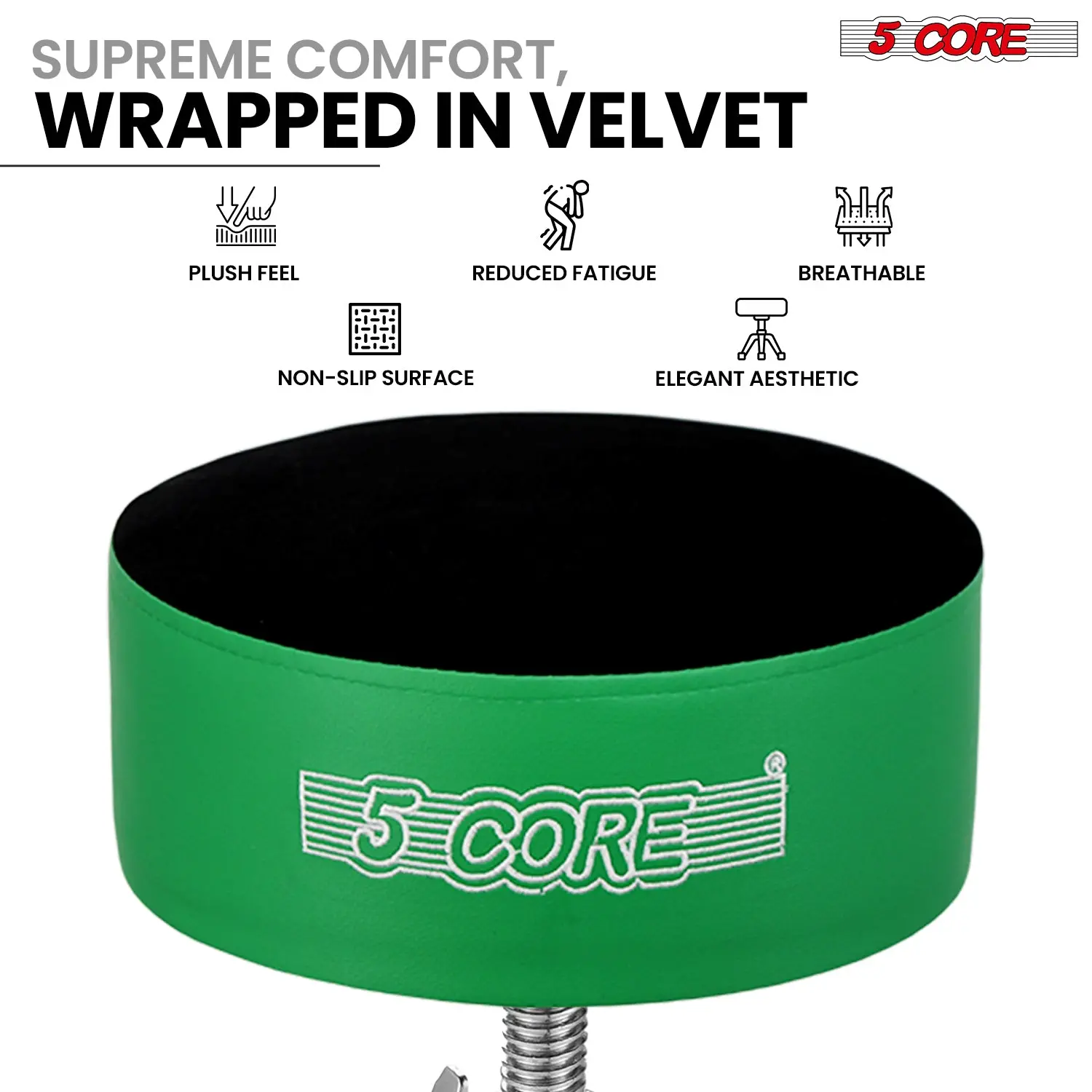 Padded Drum Throne Super thick 5″ sponge seat with a premium velvet cover offers lasting comfortperfect as a guitar stool or drum chair for extended sessions.