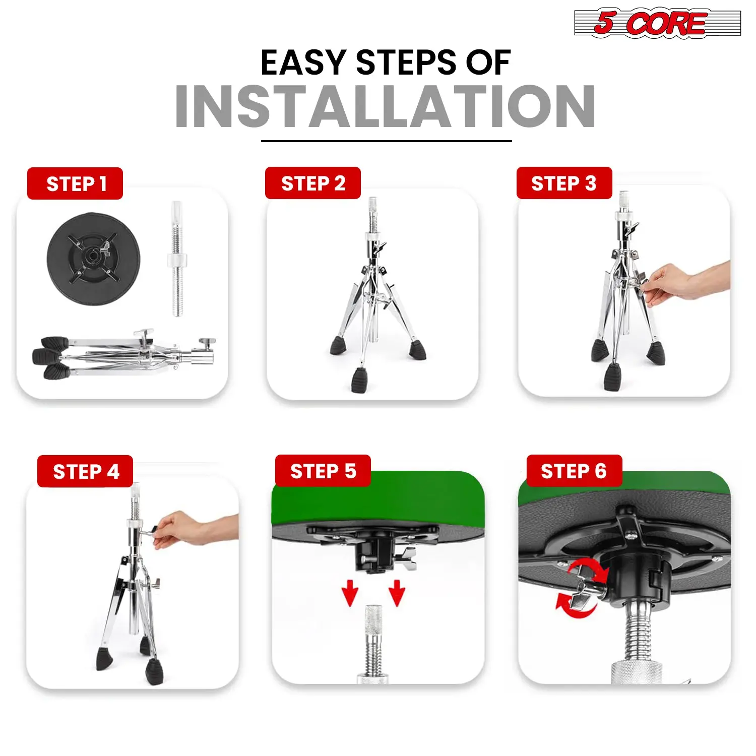 Heavy Duty Music Chair Built with a strong metal frame and double-braced legs, this drum throne supports up to 310 lbs for reliable, long-term use.