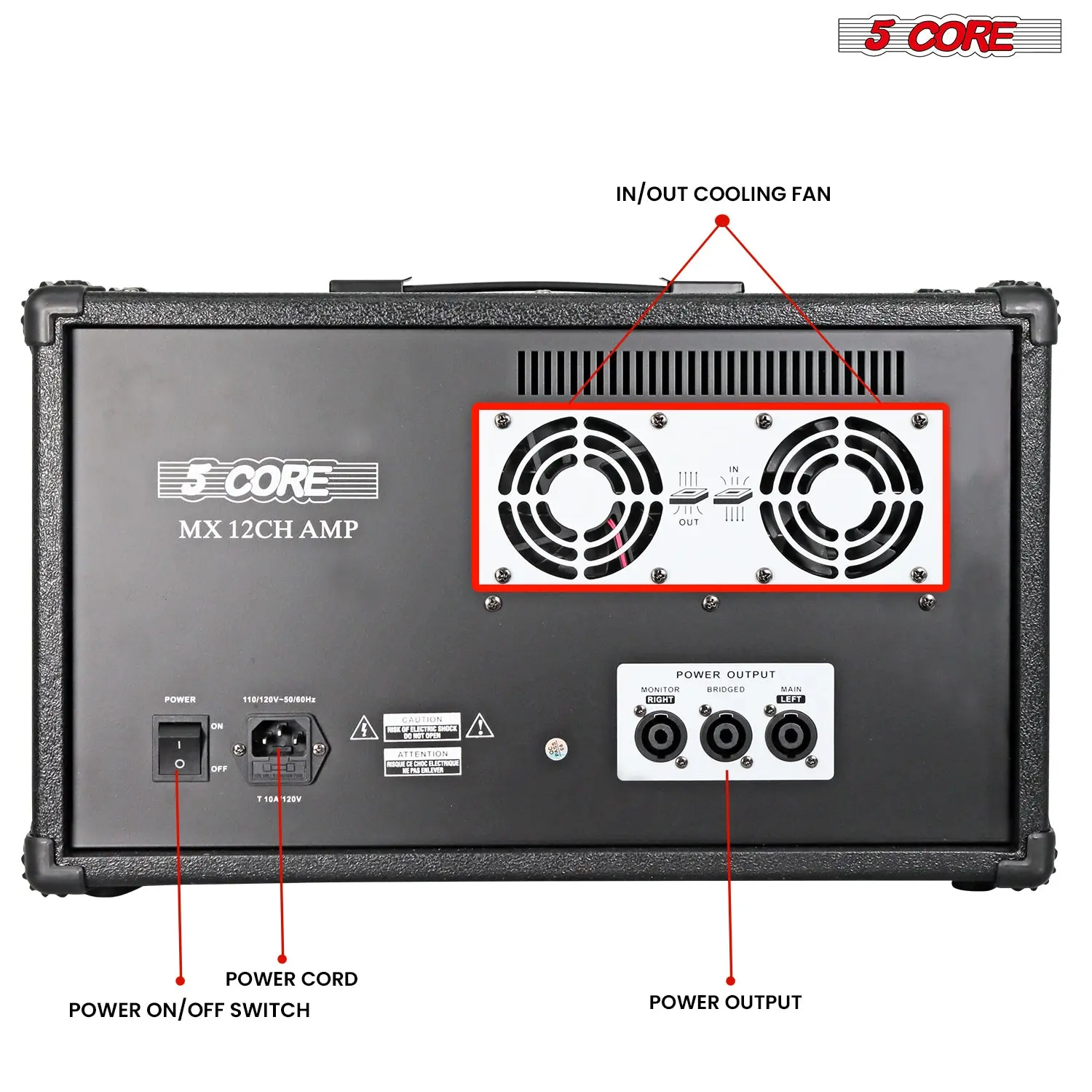 12-channel 4800W powered mixer This high-performance audio mixer is designed for DJs, live performances, and studio recording, ensuring clear and powerful audio output for any setup.