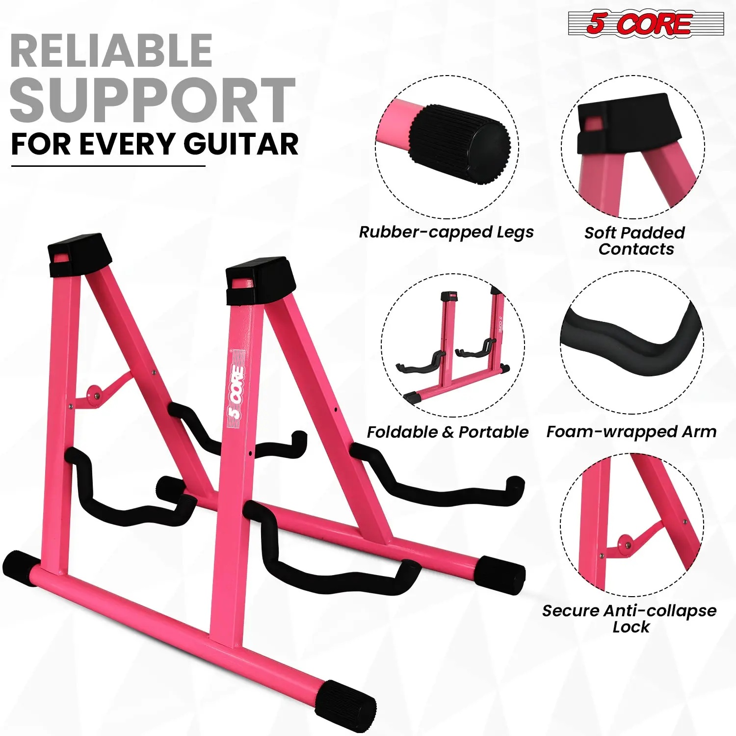 5Core Double Guitar Stand Floor Adjustable A Frame Folding Acoustic Electric Guitars Holder Stands