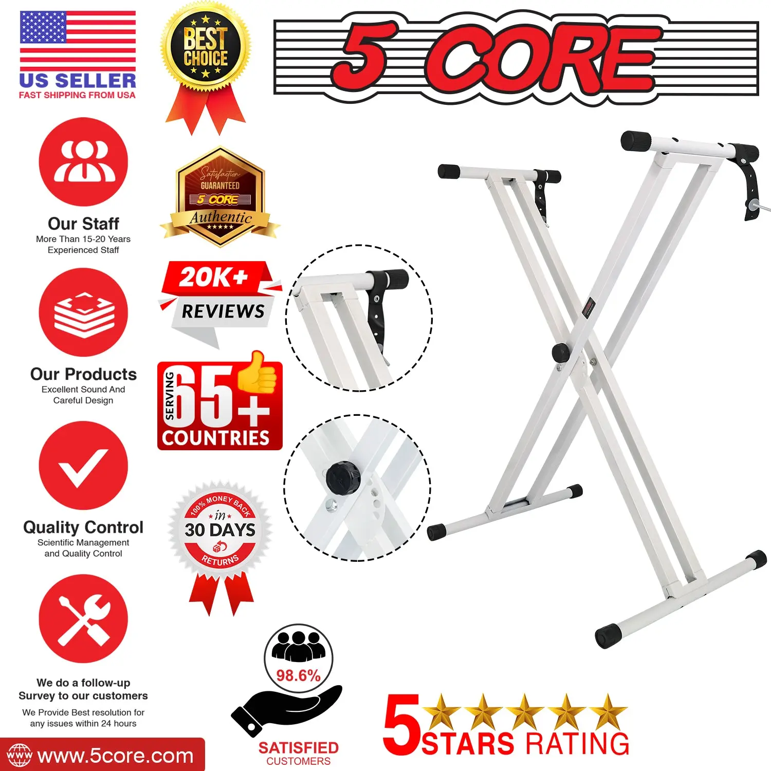 5Core Keyboard Stand Double X Style Adjustable Lift Piano Riser For 49 To 88 Keys WHITE