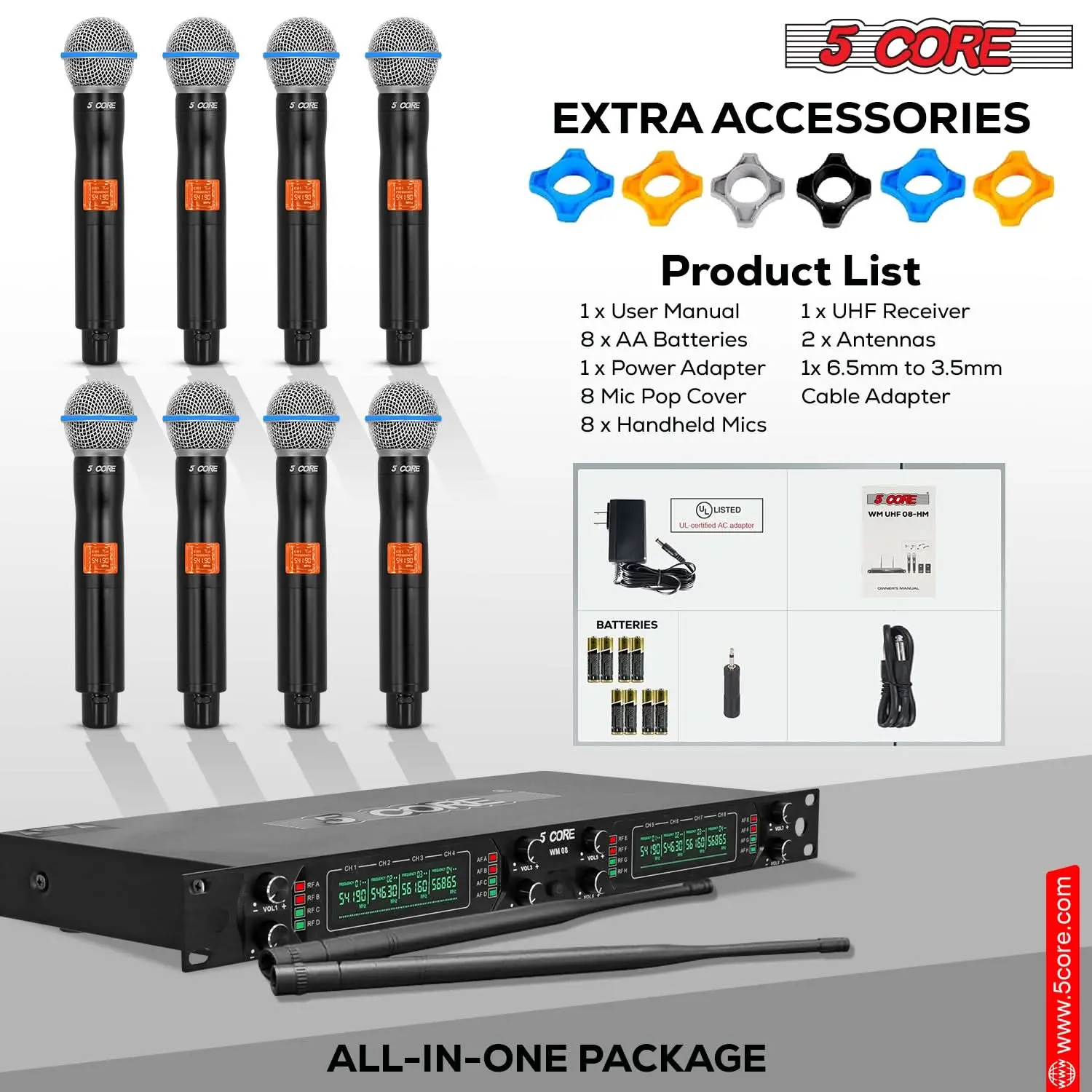 5Core Wireless Microphones 8 Channel Karaoke Professional UHF Singing Mic System Cordless Microfonos