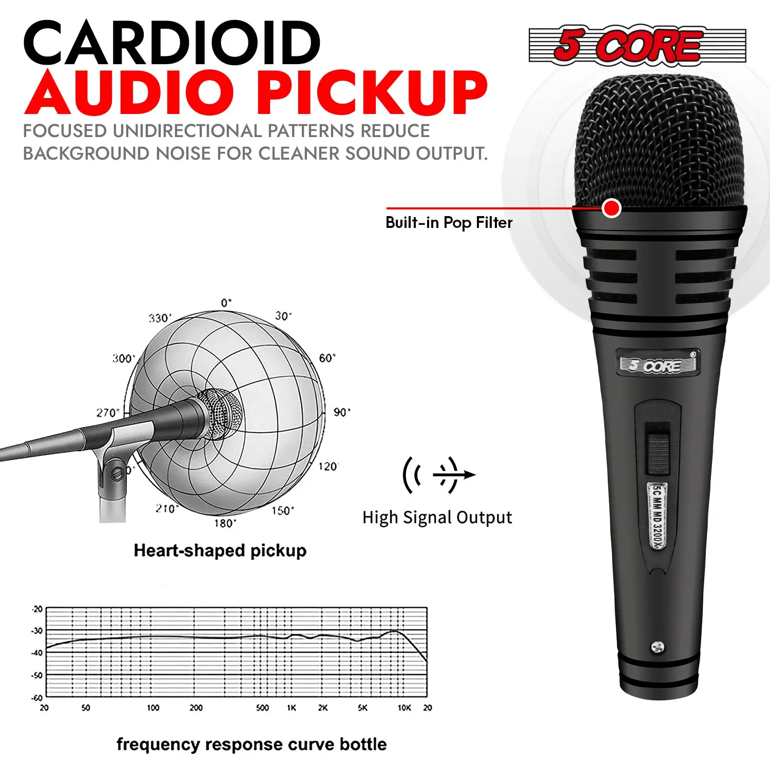 Experience pristine sound quality with our dynamic microphone, designed to pick up sound from the front and reject off-axis noise. Enjoy a flat and wide frequency range of 50 to 16,000 Hz, capturing every detail for a richer sound. Built to last, the microphone’s metal housing and reinforced wind mesh grill withstand drops and rough handling. The built-in pop and wind filters minimize plosives. A wind filter is a great feature for reducing wind noise in outdoor environments. Universally compatible with a standard XLR to 1/4 inch connector, it easily integrates with a wide variety of sound systems, from karaoke machines to professional PA DJ systems. Featuring a powerful neodymium magnet, this corded dynamic microphone ensures high output and exceptional sound performance. |