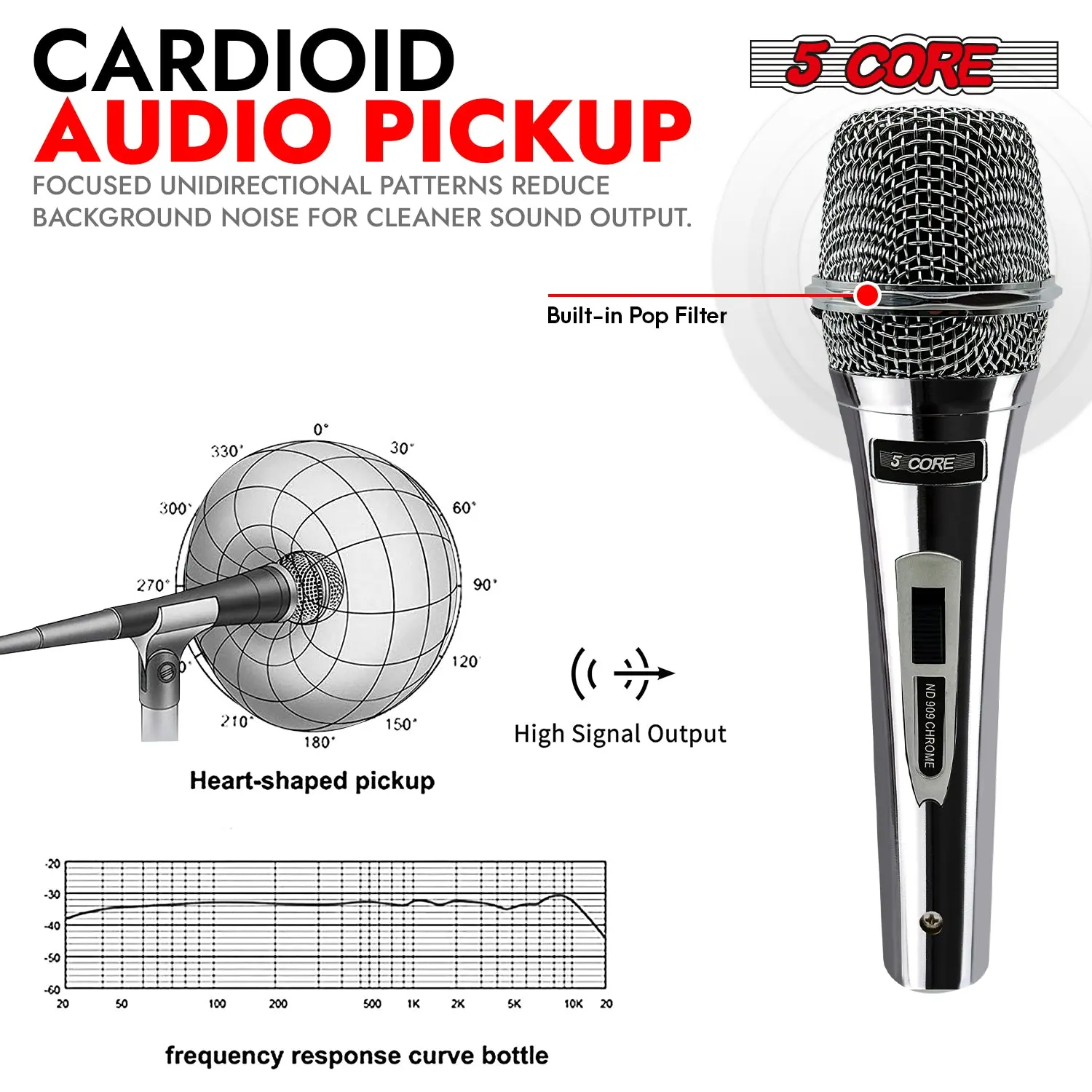 Offers amazing off-axis sound rejection for superior gain before feedback. Resulting in pristine sound quality. |