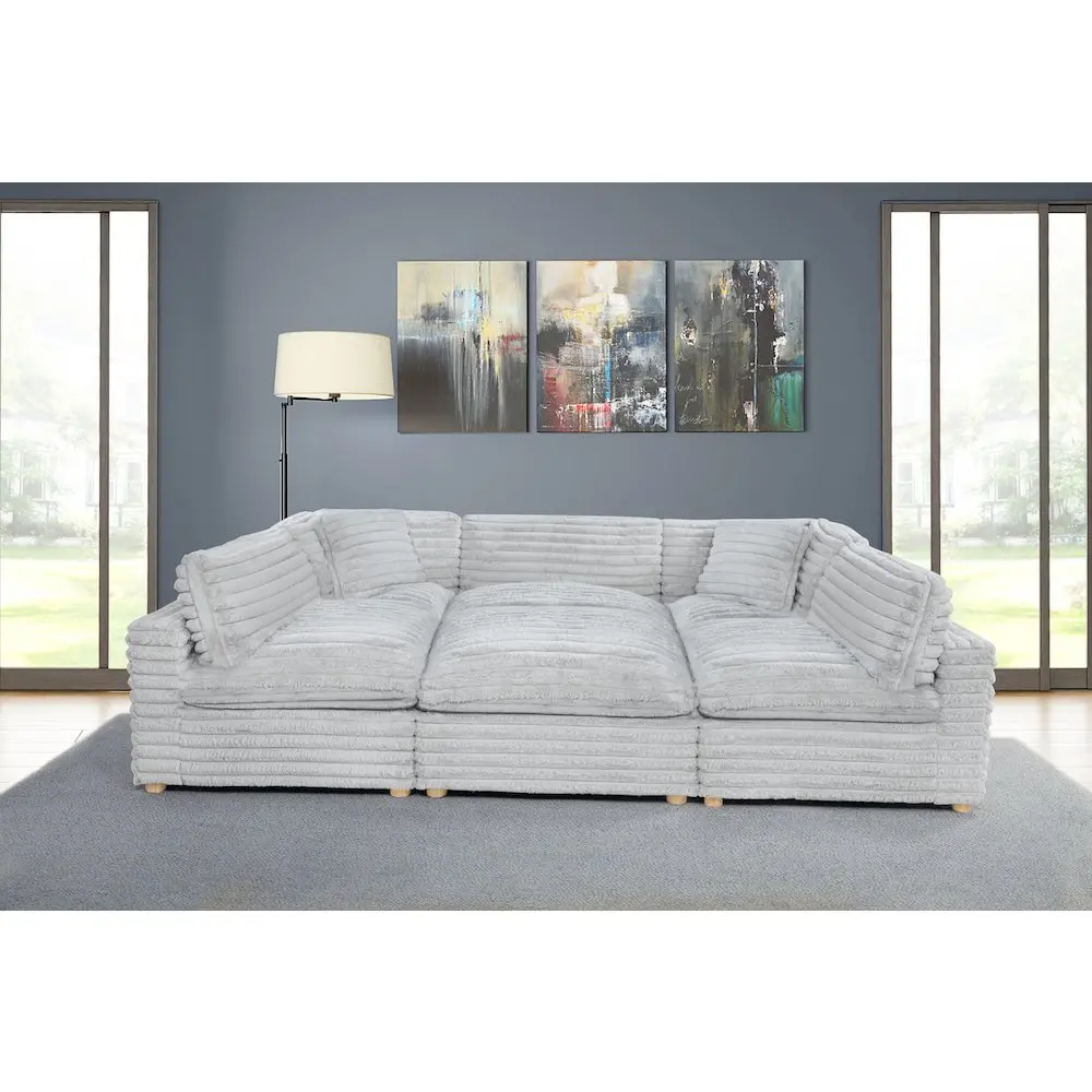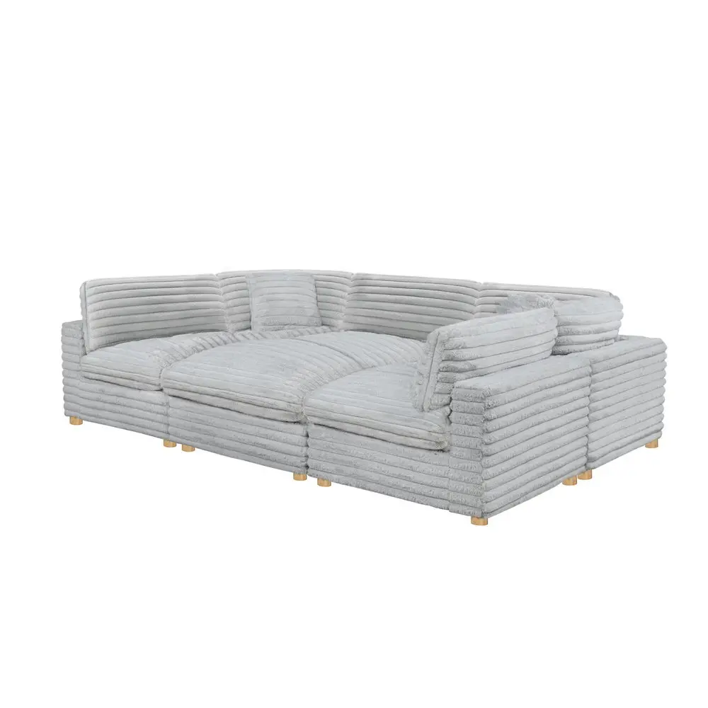 Best Quality Furniture 6 piece Corduroy Fabric Sectional with Natural Color Wood Legs, Seats Cushions are Reversible. This Sectional Comes in 3 different colors Light Grey, Black and Beige.