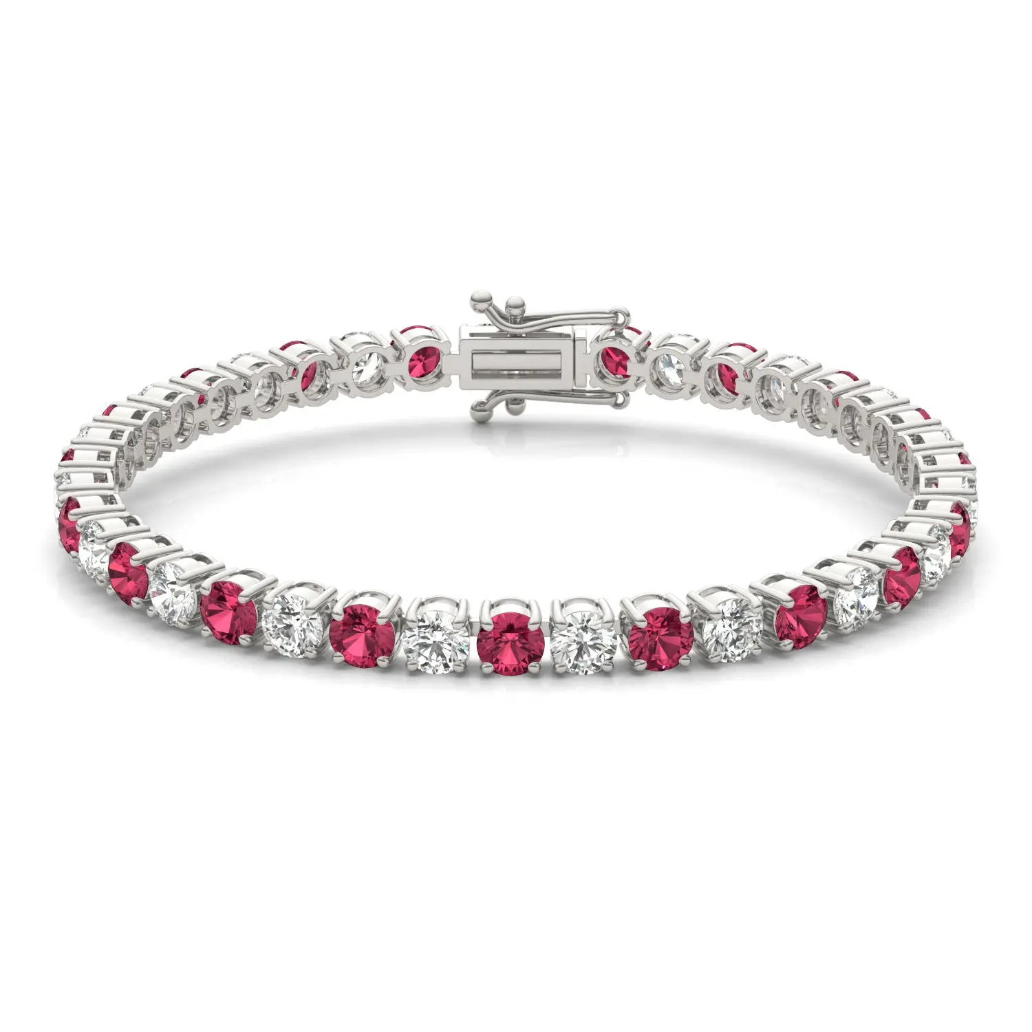 • Alternating vivid red rubies and brilliant white diamonds for striking visual contrast