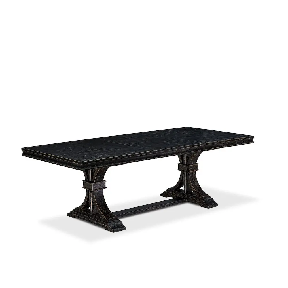 The dining set includes a Removable Leaf dining table and 6 chairs, creating a chic and unified dining area ideal for entertaining guests. Its robust build and graceful design effortlessly complement any interior decor, merging practicality with aesthetic charm. By harmonizing classic elements with contemporary touches, this ensemble enriches your home’s atmosphere with enduring sophistication. The dining table showcases an exquisite Sand Blasting Black finish on its top and base, embodying timeless elegance. Dark Grey Pu Leather chairs with a Black finish exude warm, rich tones that enhance the refined ambiance. The juxtaposition of Dark Grey Fabric against the Black finish strikes a balance between traditional and modern styles, elevating any dining space with a sophisticated allure. Crafted from premium Acacia Wood, this dining set features a robust frame ensuring exceptional stability and long-lasting durability. Acacia Wood, celebrated for its distinctive grain and natural beauty, enhances both the visual and functional aspects of the set, promising to be a cherished centerpiece for years to come. Its use not only enhances the chairs’ longevity but also imbues them with timeless allure, making them a perfect fit for any elegant dining area. The dining chairs boast button-tufted backrests and plush Pu Leather seats, adding a touch of refinement to your dining space while ensuring unparalleled comfort. The button tufting provides additional lumbar support, and the Pu Leather upholstery offers a cozy seating experience, seamlessly blending comfort with sophisticated style.