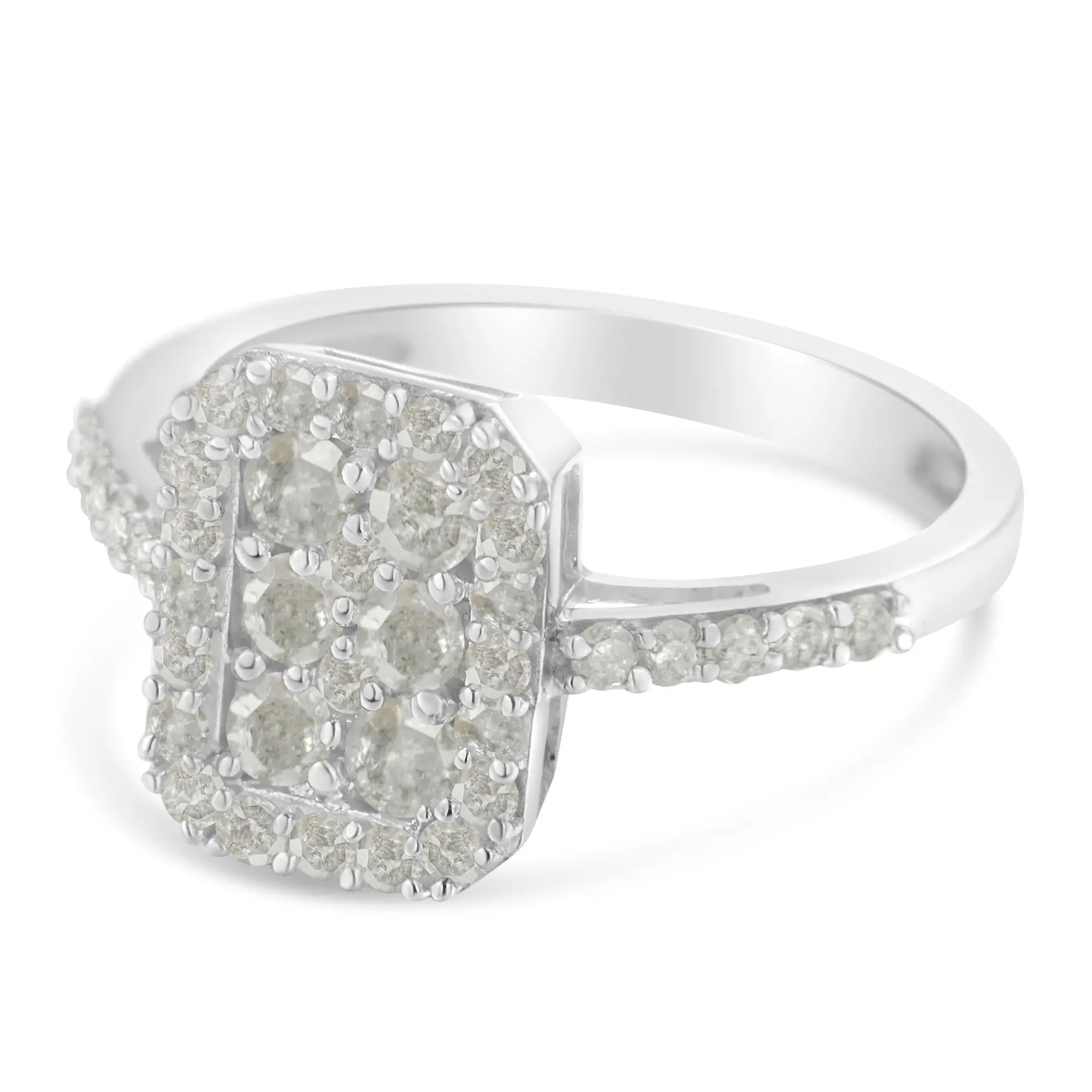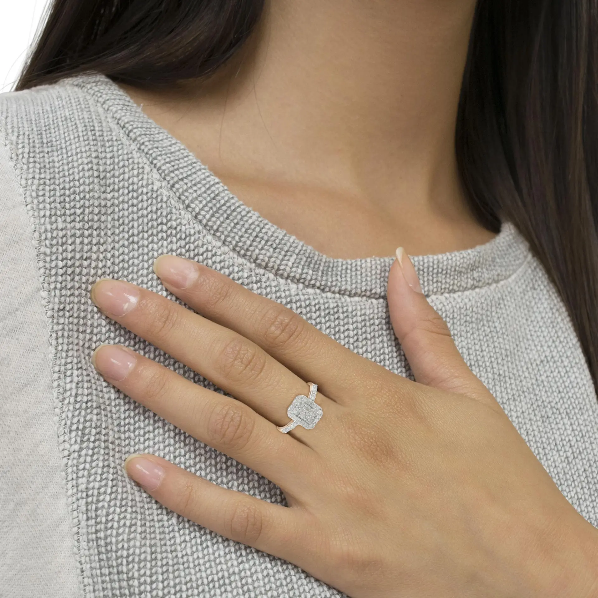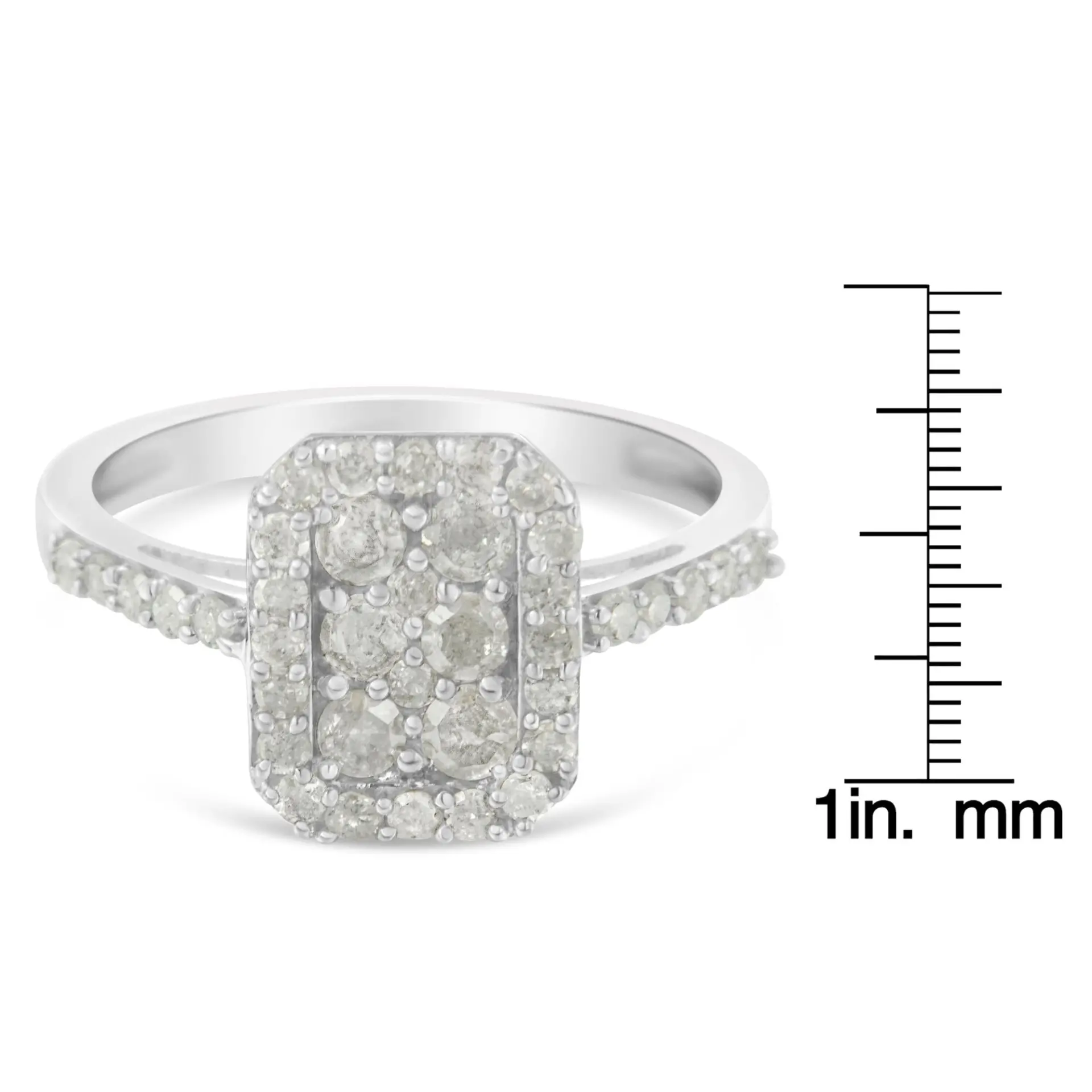 .925 Sterling Silver 1.0 Cttw Diamond Emerald-Shaped Cluster with Halo Cathedral Style Cocktail Ring (I-J Color, I3 Clarity)