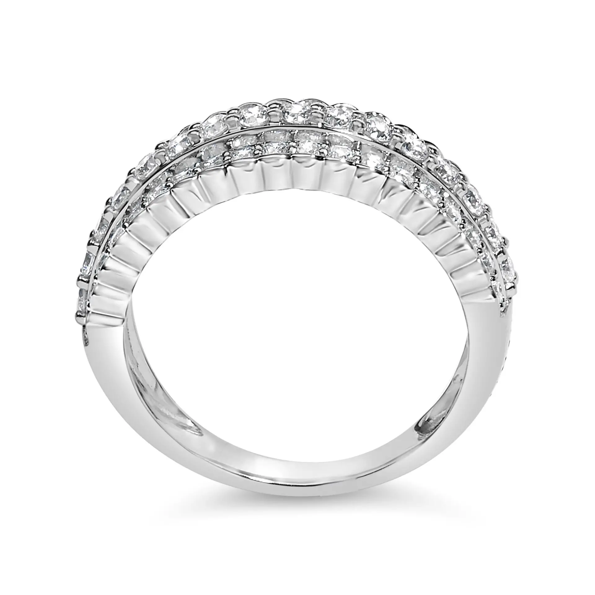 Immerse yourself in the ethereal brilliance of this sterling silver band, gracefully embellished with three rows of lab-grown diamonds totaling 1.0 carat. Each gem, meticulously prong-set, radiates a celestial light, intensifying the allure and fire within. Crafted from .925 sterling silver and bestowed with a rhodium plating, this ring promises an enduring luster that resists the whispers of time. By choosing this sustainable treasure, not only do you celebrate beauty, but you also advocate for ethical luxury. Ideal for the discerning spirit, this piece embodies a timeless elegance that elevates any ensemble it graces.