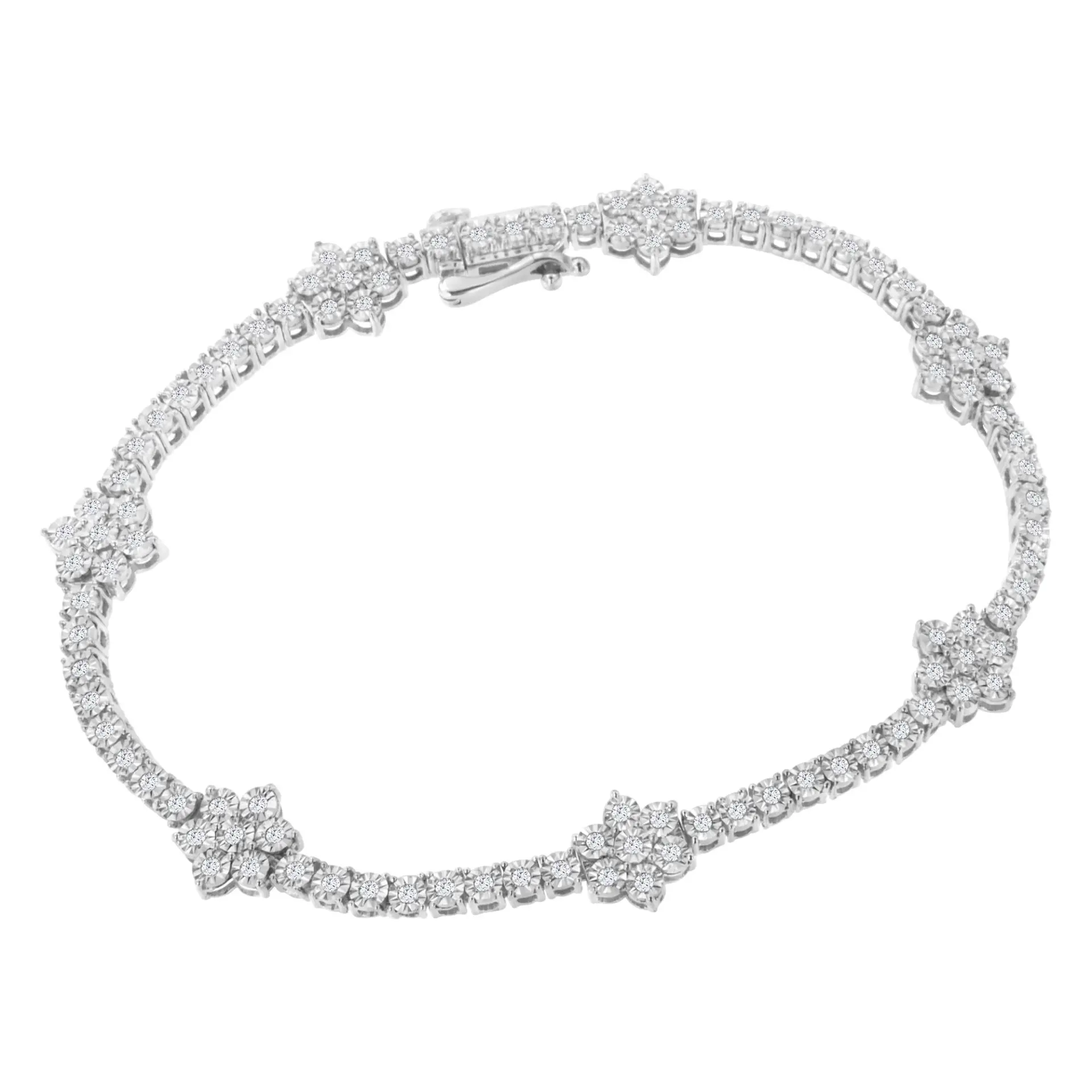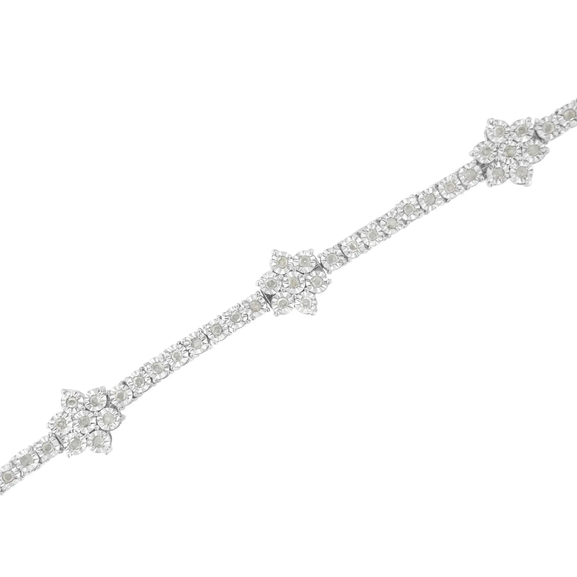 .925 Sterling Silver 1.0 cttw Miracle-Set Diamond Floral Station Tennis Bracelet (I-J Color, I3 Clarity) – 7-1/2″