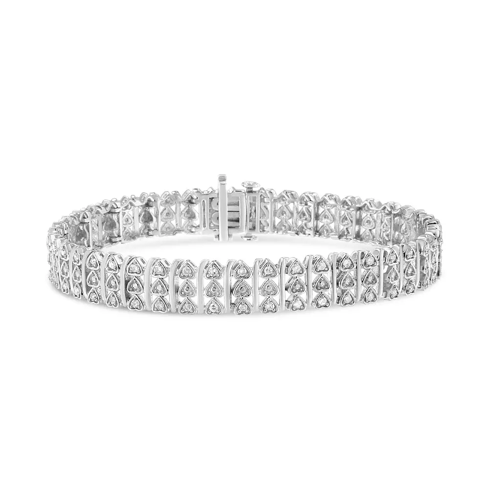 .925 Sterling Silver 1.00 Cttw Diamond Multi Row Heart Link Bracelet (H-I Color, I1-I2 Clarity) – 7.25″ Inches