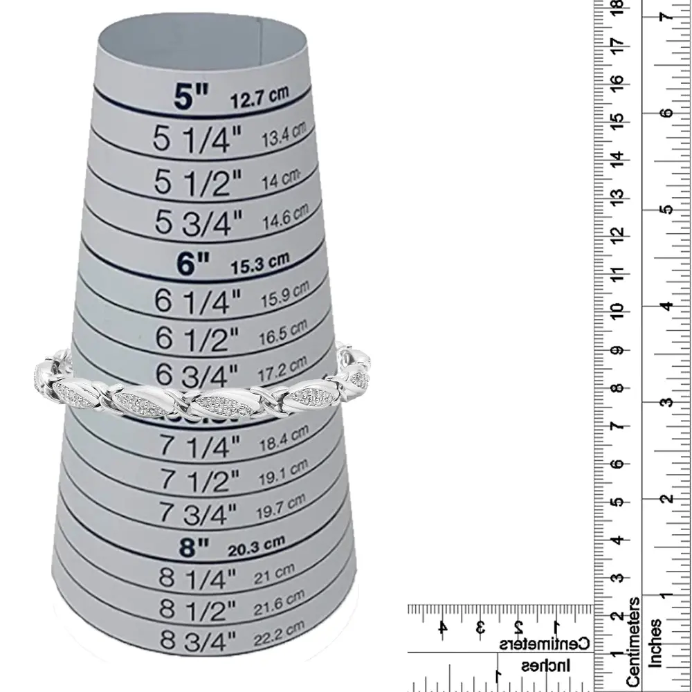 Pique interest with the sparkling allure of 120 diamonds that shine in a total 1.00 cttw and of which are an approximate I-J color and I2-I3 clarity. This X-link bracelet reflects light from every angle, with clusters of round diamonds within each link that are secured within prong settings. The .925 sterling silver is a perfect complement to these stones. This bracelet fastens securely with a box with clasp. It is 7.25 inches long, best for small and medium sized wrists.