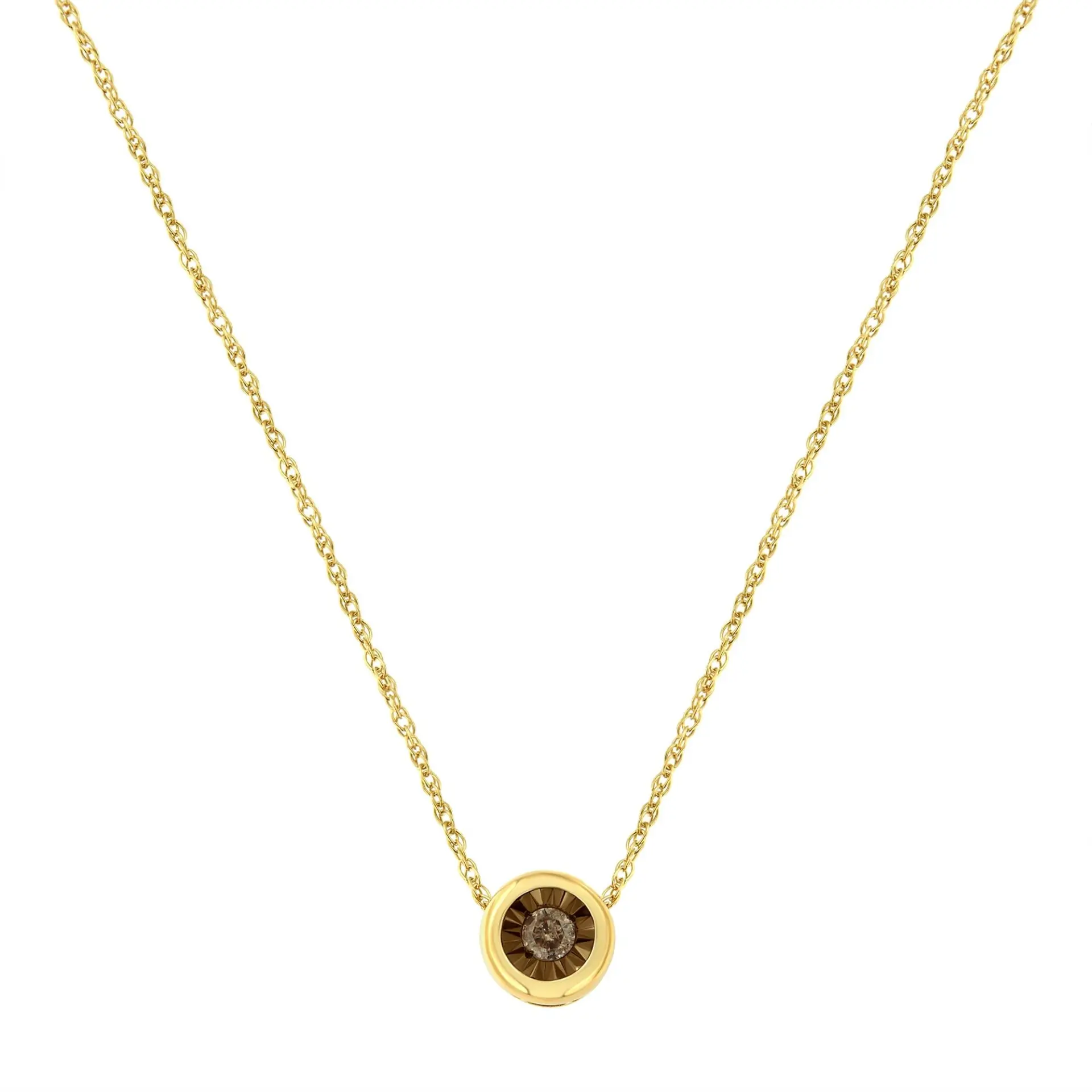 Enjoy this delicate pendant necklace featuring a single miracle set diamond in a bezel setting. This delicate necklace is crafted in two-tone sterling silver and has a total diamond weight of 1/10 carats.