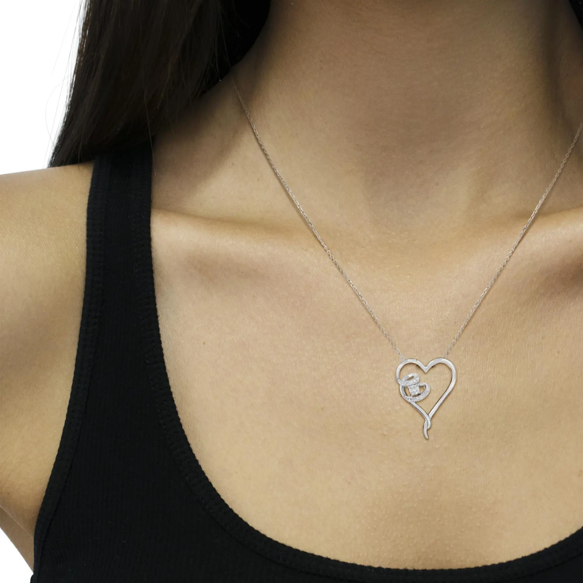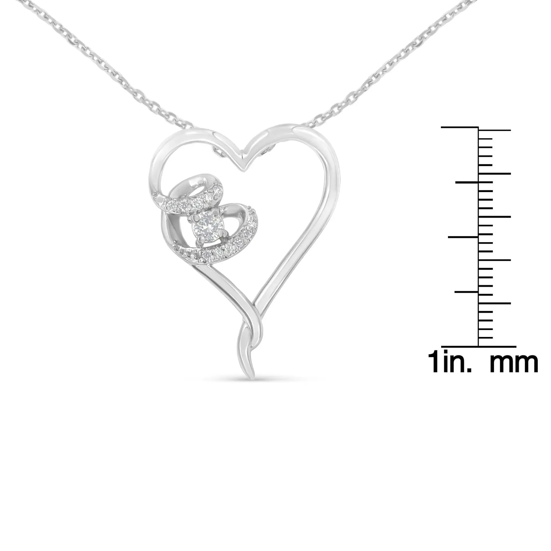 Twelve delicate, sparkling diamonds adds extra twinkle to this beautiful heart pendant necklace. The diamonds are set in polished sterling silver for an extra feminine look. Show her your love this Valentines Day, Mothers Day, birthday, or Christmas with this heartfelt gift.