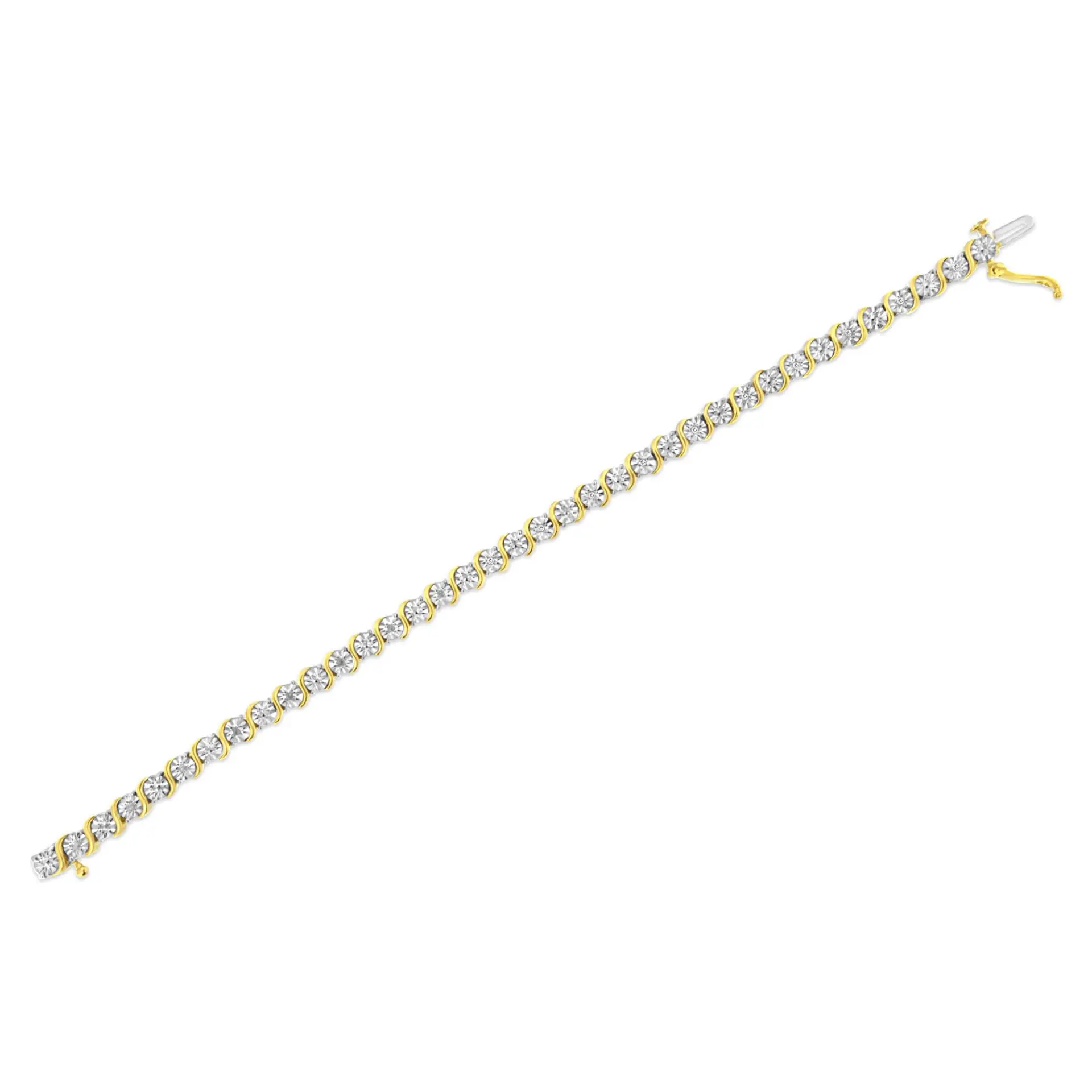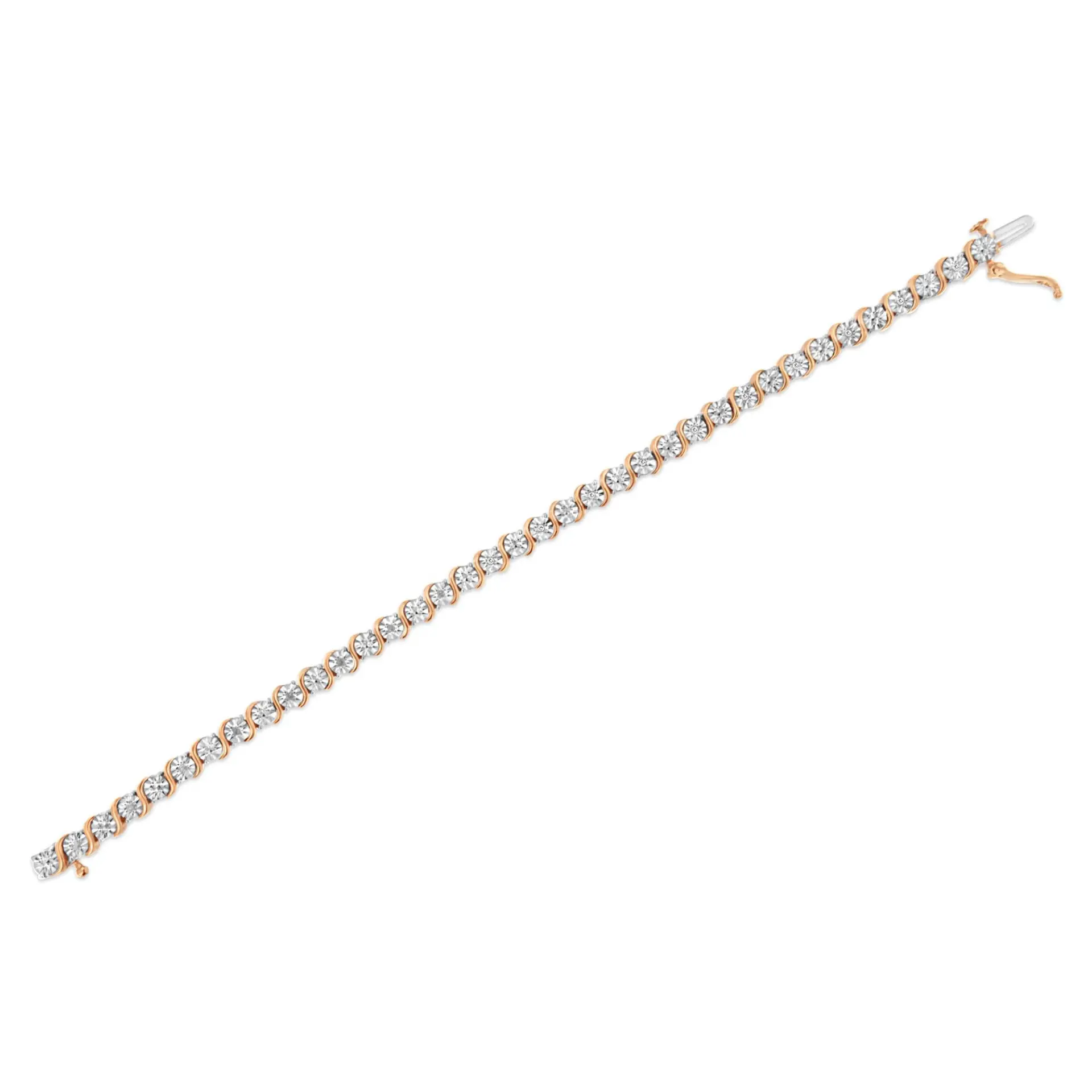 .925 Sterling Silver 1/10 Cttw Diamond Round Miracle Plate and “S” Link Tennis Bracelet (I-J Color, I2- I3 Clarity) – 7″