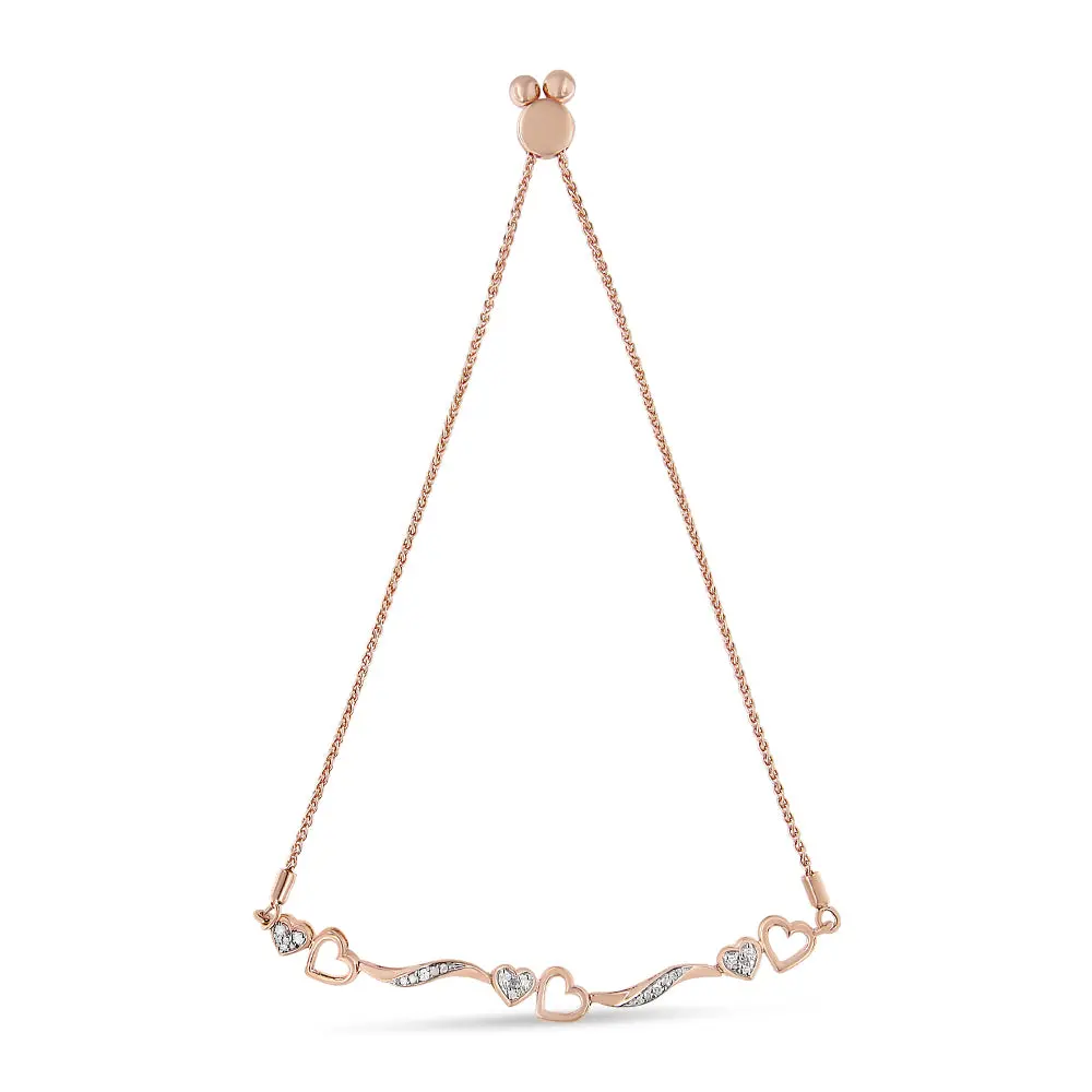 .925 Sterling Silver 1/10 Cttw Diamond Wave and Hearts 4-10 Adjustable Bolo Bracelet (I-J Color, I3 Clarity)