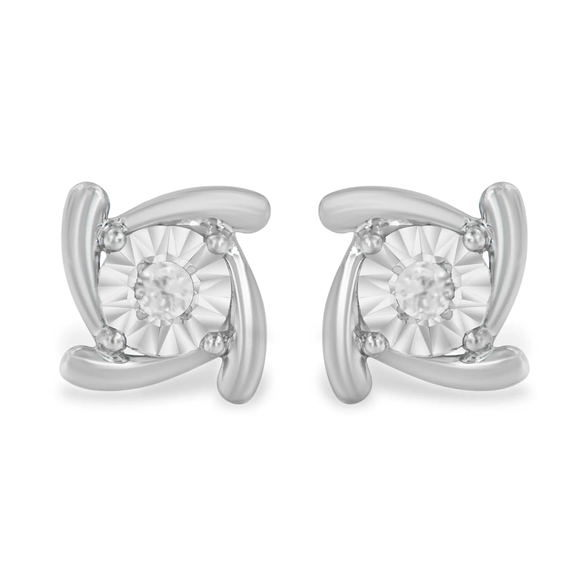 .925 Sterling Silver 1/10 Cttw Round Brilliant-Cut Near Colorless Diamond Miracle-Set Square Pinwheel Stud Earrings (I-J Color, I3 Clarity)