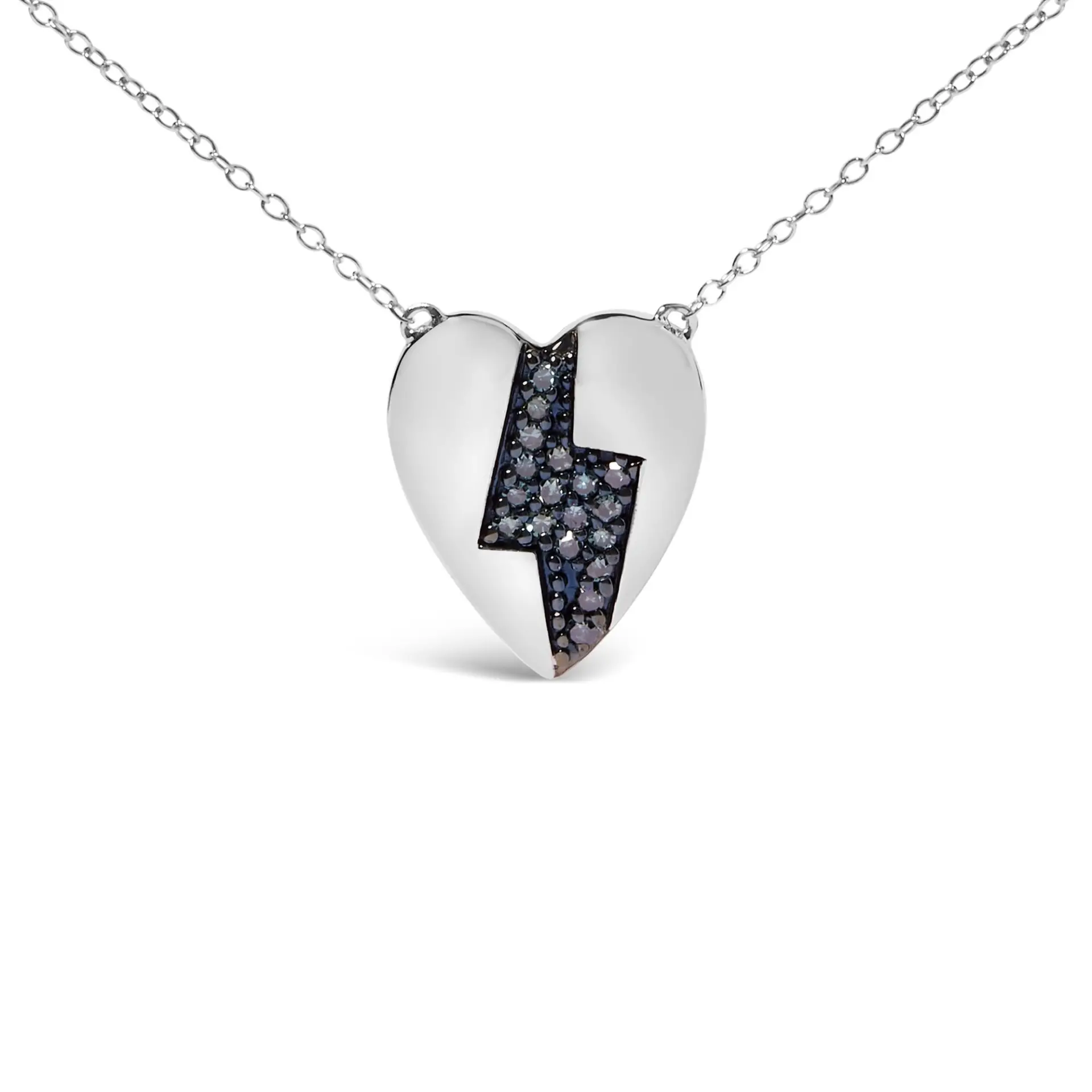 925 Sterling Silver 1/3 Ctw Blue Diamond Heart and Lightning Bolt Pendant Necklace (Blue Color, SI1-SI2 Clarity) – 18″ Inches