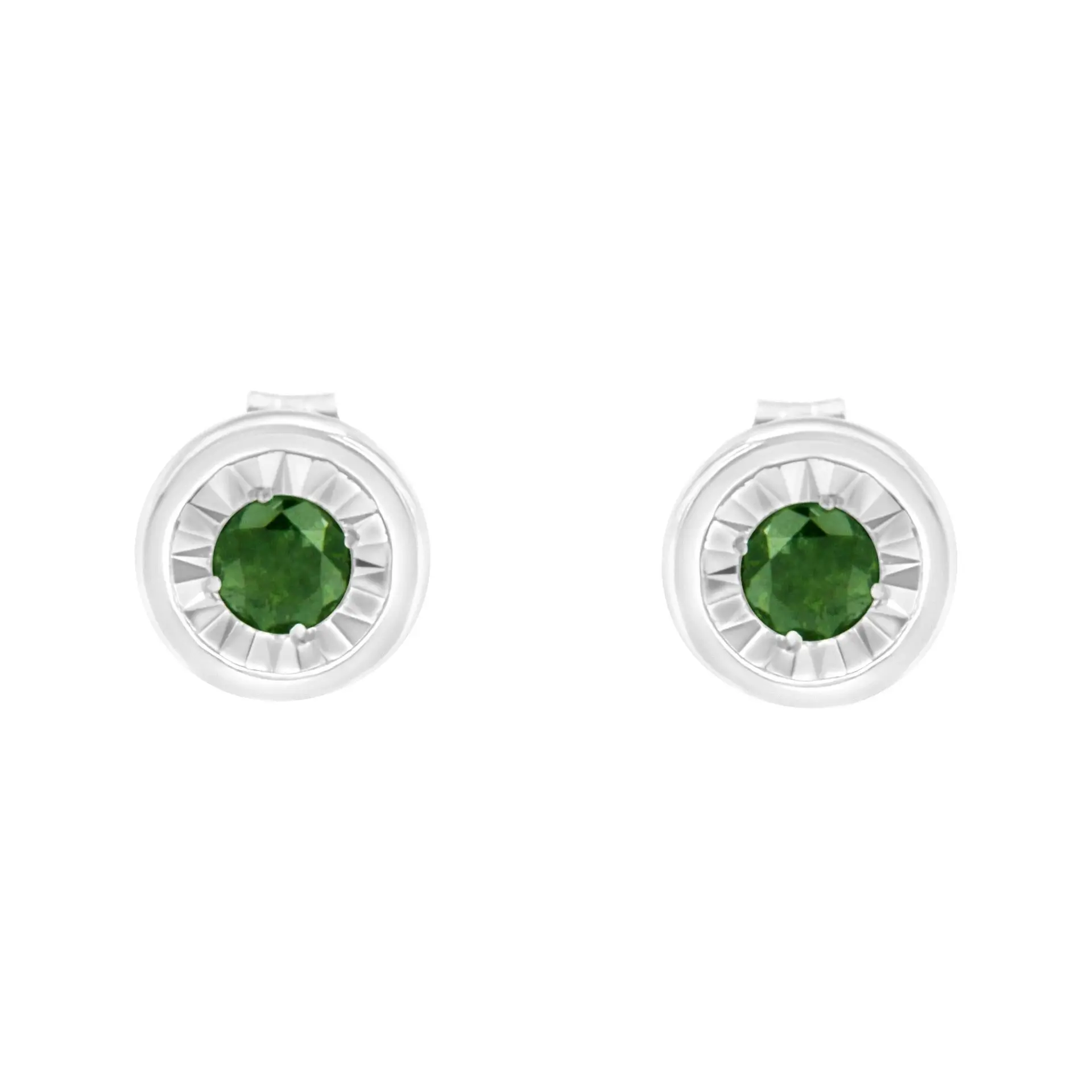 .925 Sterling Silver 1/4 Cttw Round Brilliant-Cut Green Diamond Miracle-Set Stud Earrings (Fancy Color-Enhanced, I1-I2 Clarity)