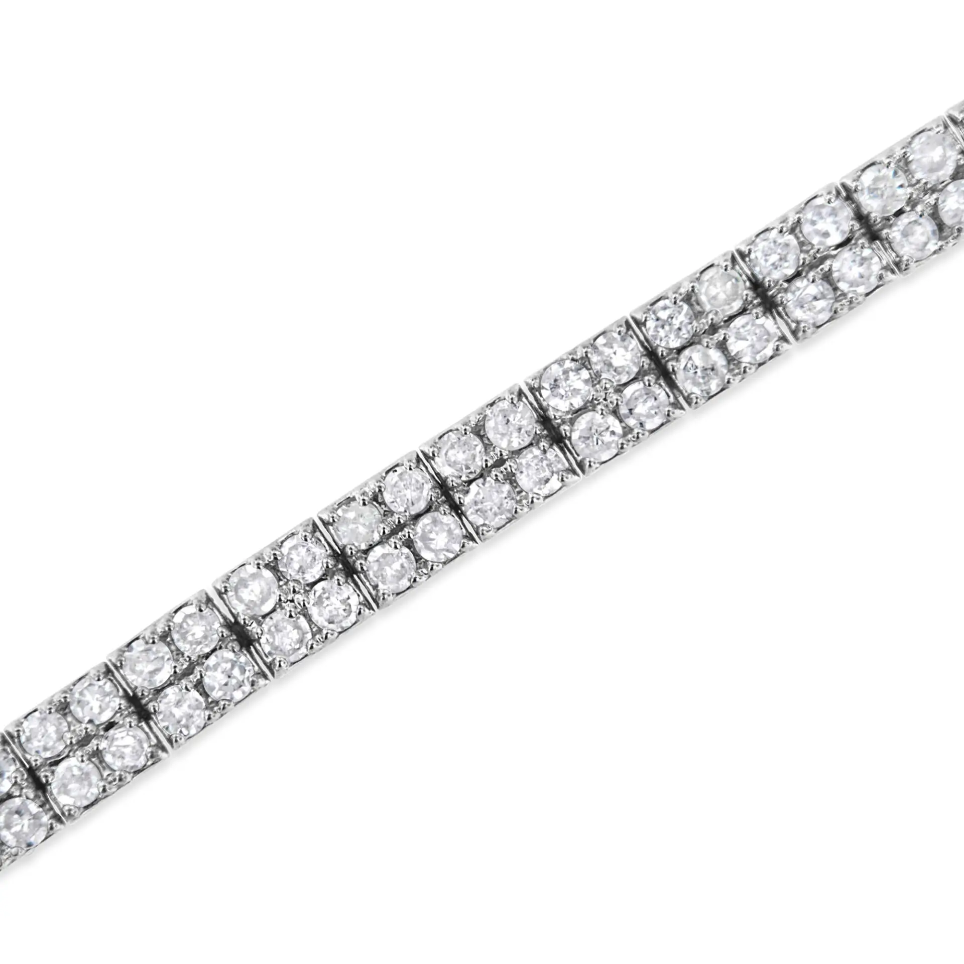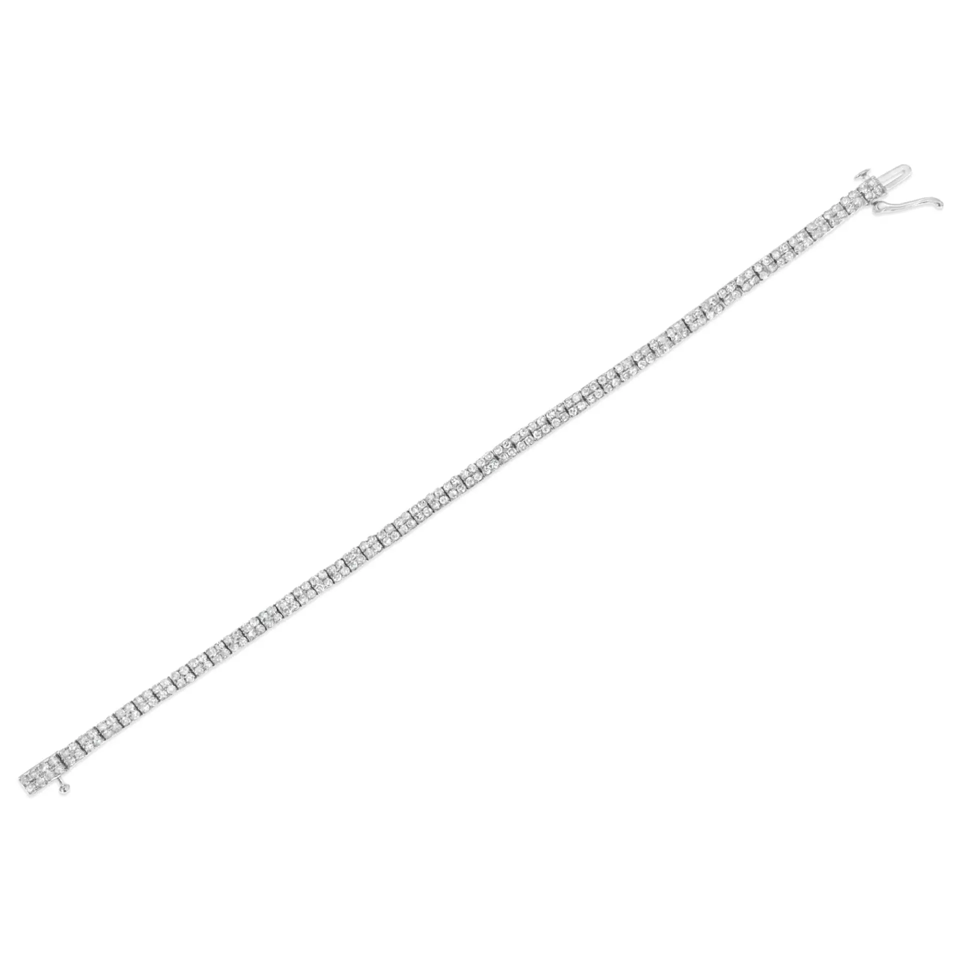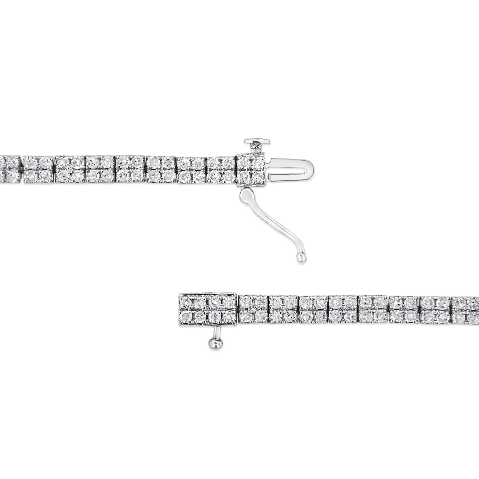 Modern yet timeless, this .925 sterling silver piece is a twist on the classic link bracelet. Silver square links of 4 round-cut diamonds each make up the design of this everlasting piece. The diamonds sit in a striking prong setting, and have a total diamond weight of 3 cttw. It’s a classic and feminine piece she’ll want to show off every day. Whether worn for daytime glamour or evening sparkle, this bracelet is gorgeously versatile.