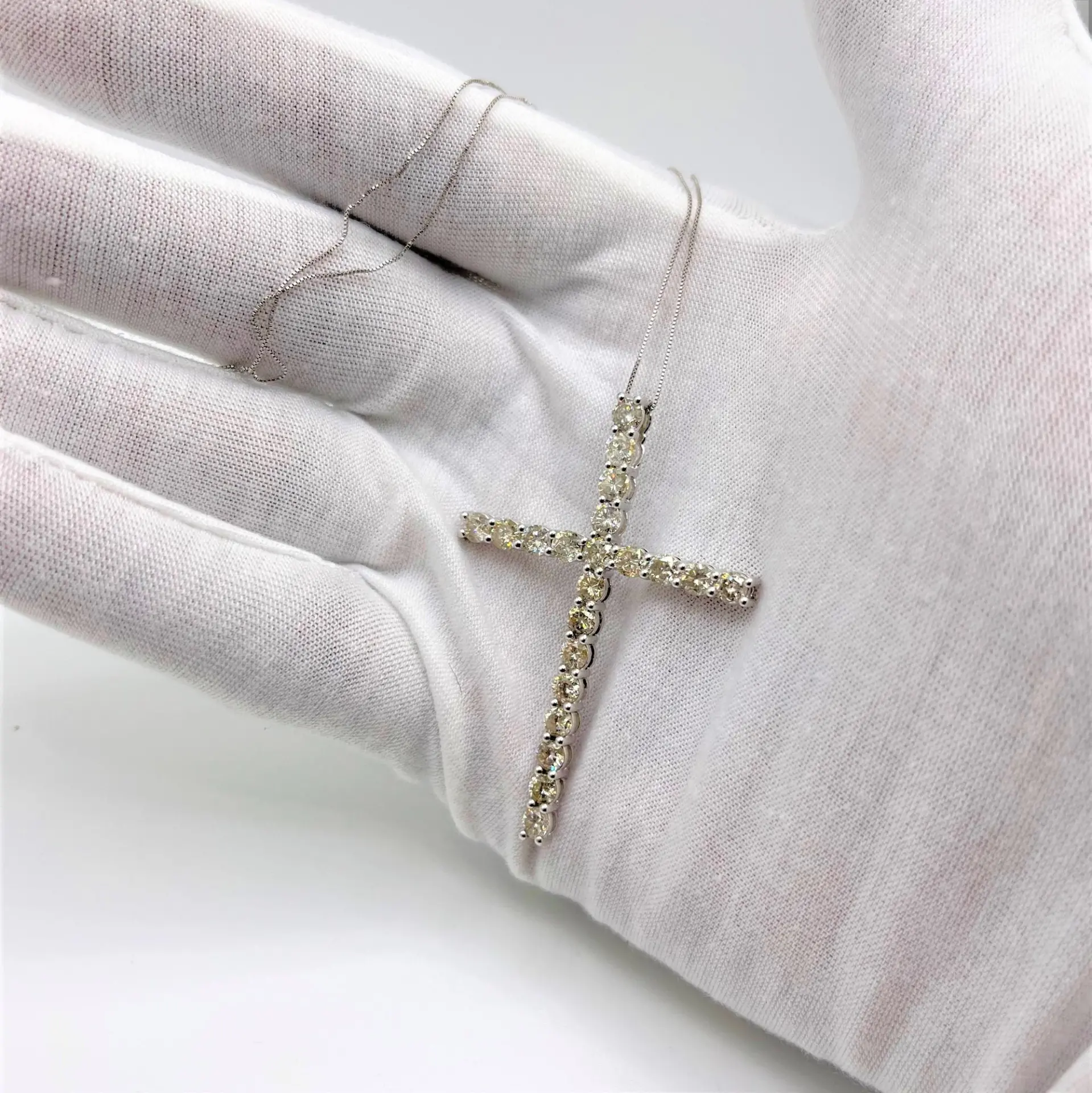 .925 Sterling Silver 4.0 Cttw Diamond 2-1/4″ Cross Pendant with Box Chain Necklace (I-J Color, I1-I2 Clarity) – 18″