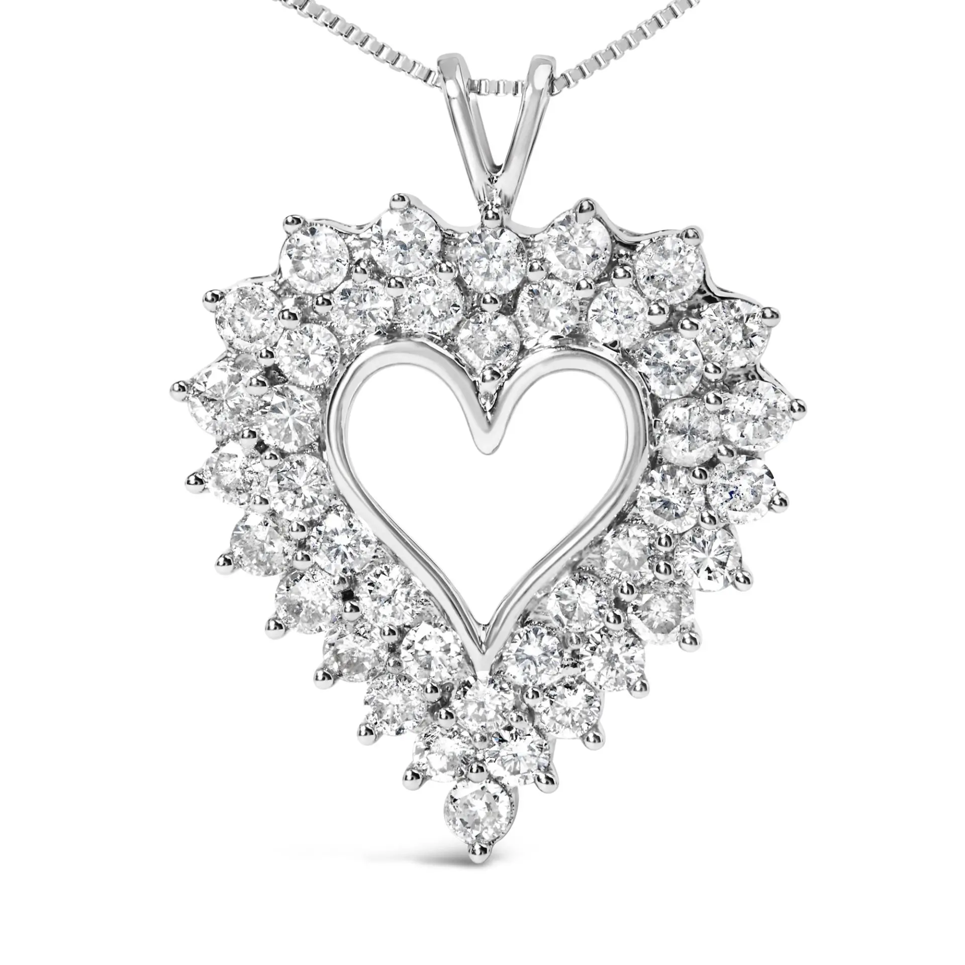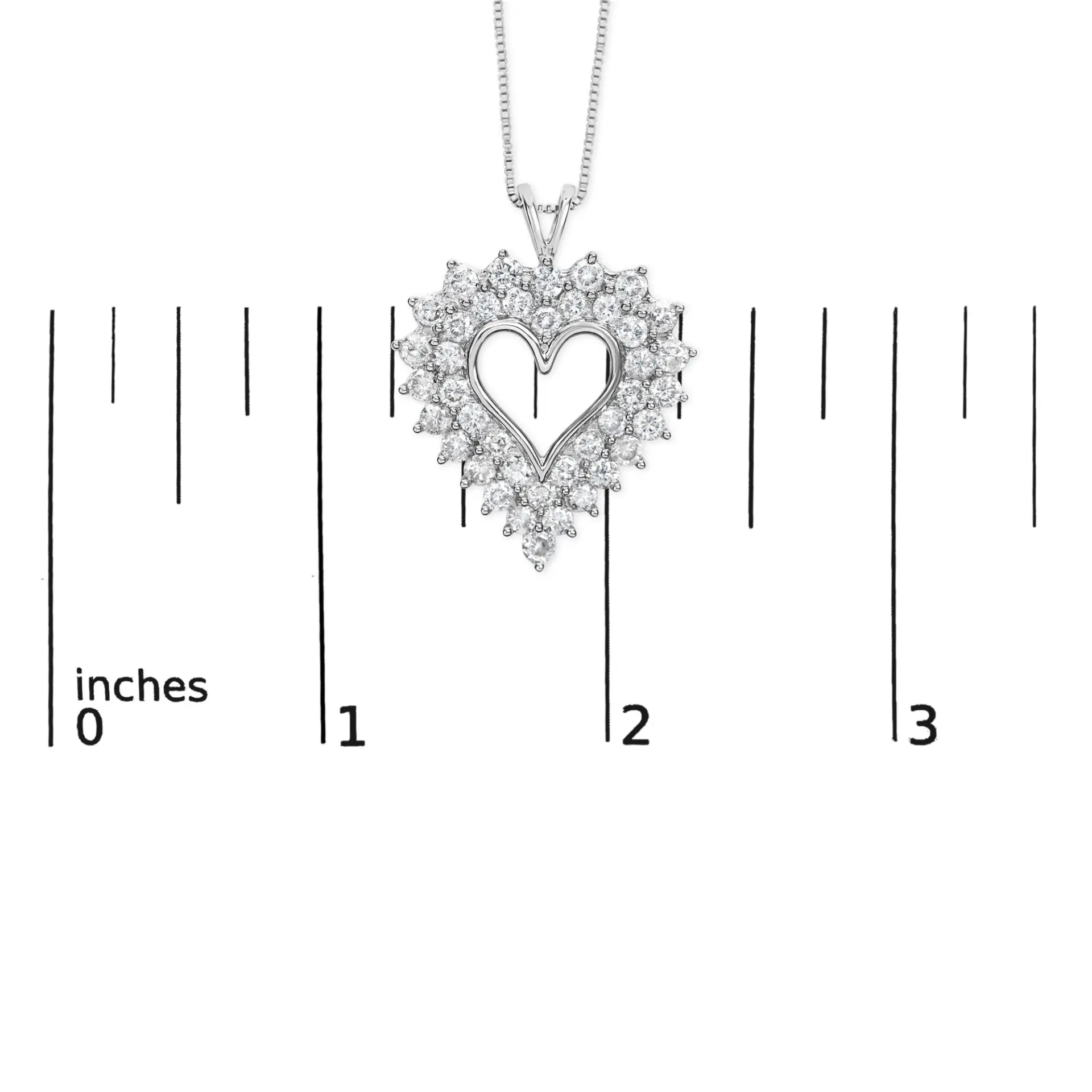 Take your love for your other half (or yourself) to the next level with this pendant necklace thats ultra-striking. The focal point of the piece lies in the open heart pendant thats surrounded by natural round diamonds that are made using 110 stones. Fixed on a prong setting, the two rows of shiny details will surely be a conversation-starter. Measuring 18-inch, the 925 Sterling Silver box chain is secured with a spring-ring clasp.