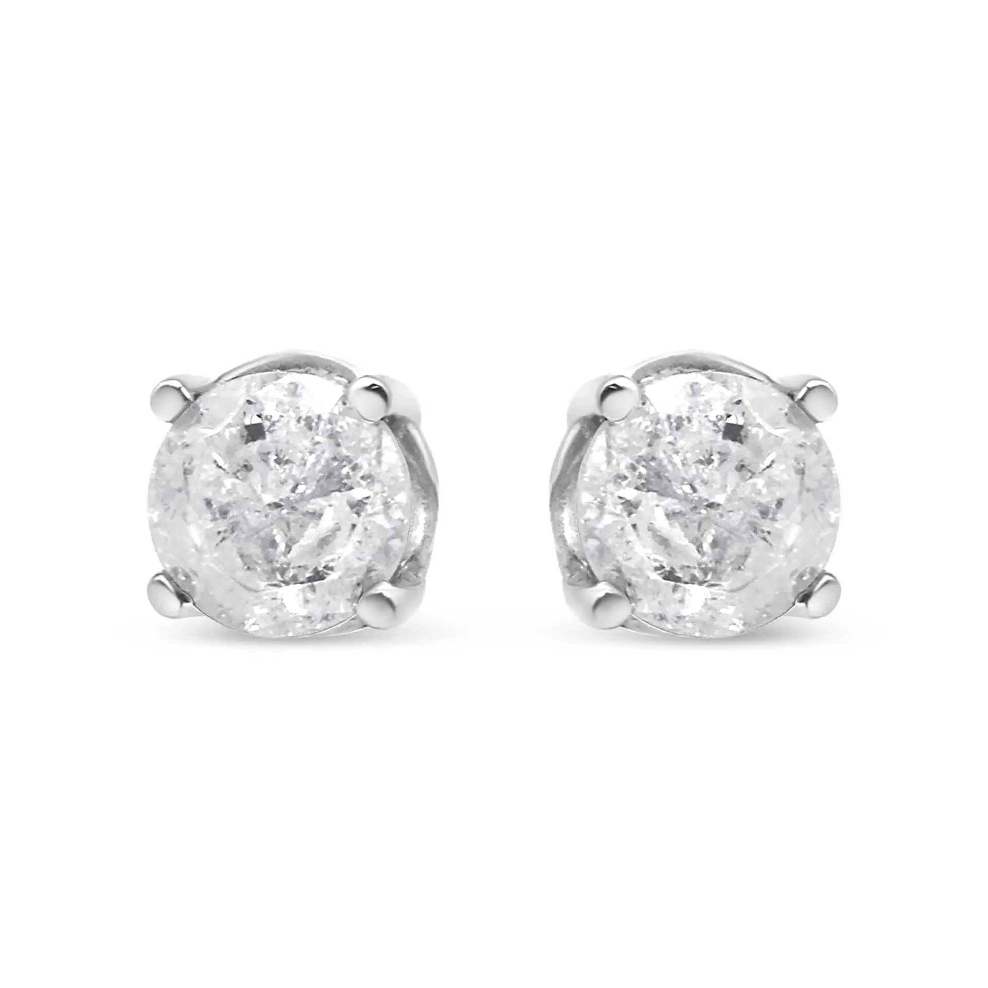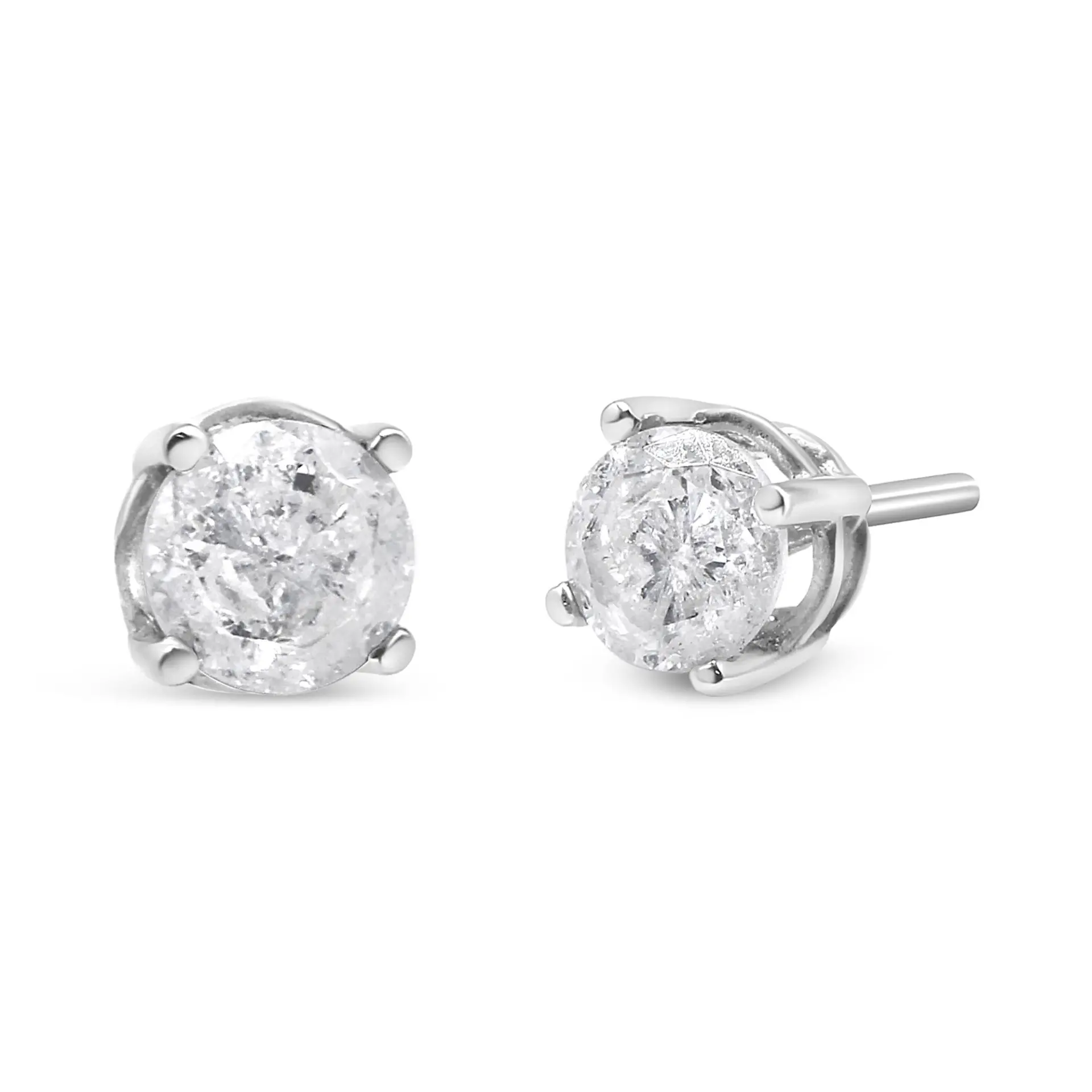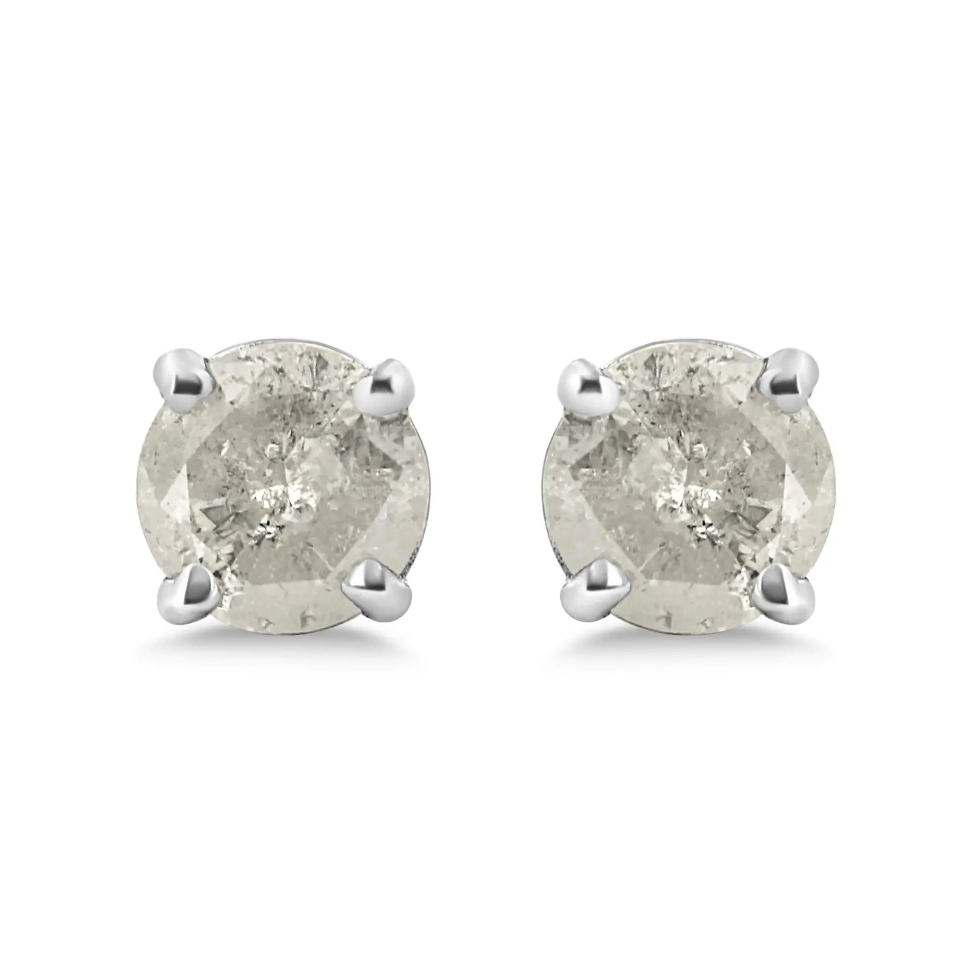 .925 Sterling Silver 4-Prong Round-cut “Salt and Pepper” Diamond Classic Stud Earrings (I-J Color, I3 Clarity)